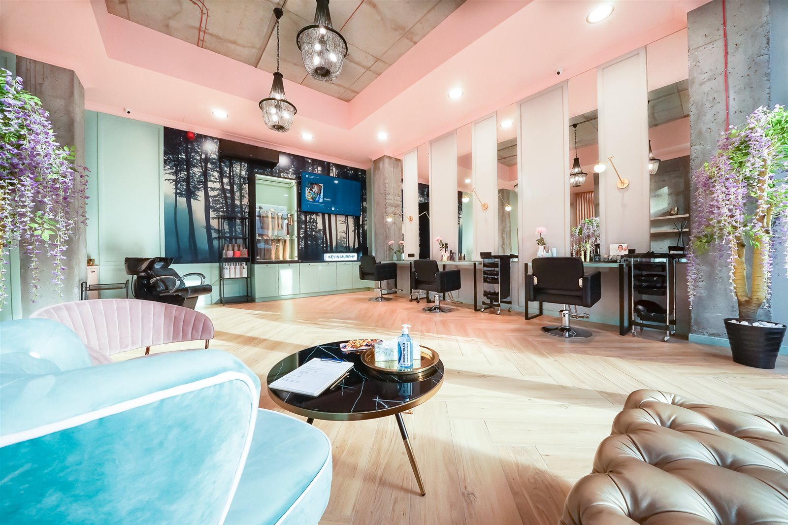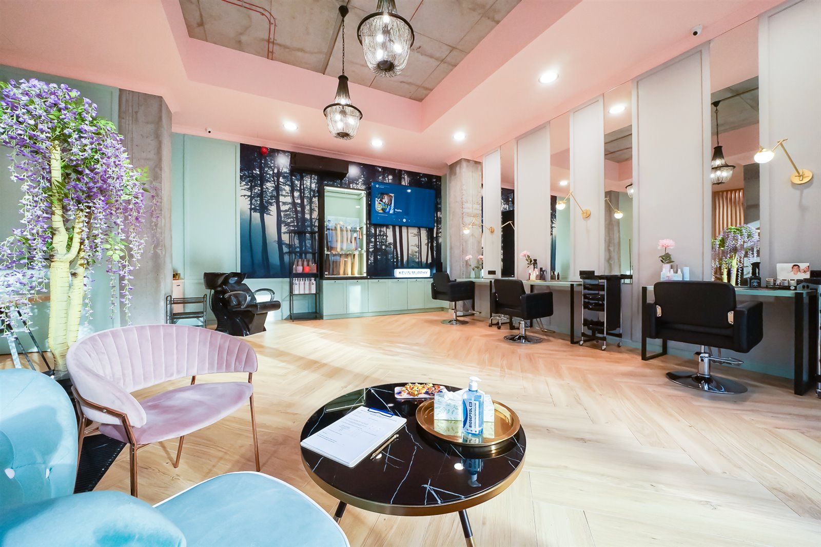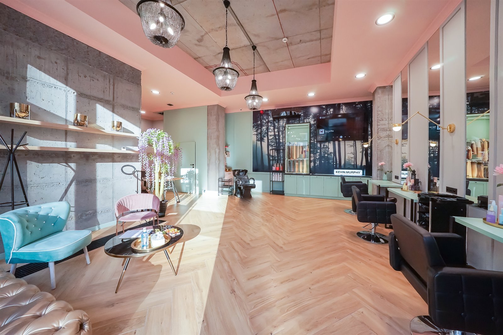 kosmetyki ( farby, rozjaśniacze, oksydanty itp od Kevin Murphy) itp, wozki pomocnicze, fotele fryzjerskie, myjnia, telewizor SAMSUNG 75' , monitoring, regały, stoły, stoliki, fotele tapicerowane, kuchnia wyposazona, oraz wszystko to co jest na zdjeciach i wiele innych rzeczy schowanych w szafkach.. ( zapasy na pół roku )