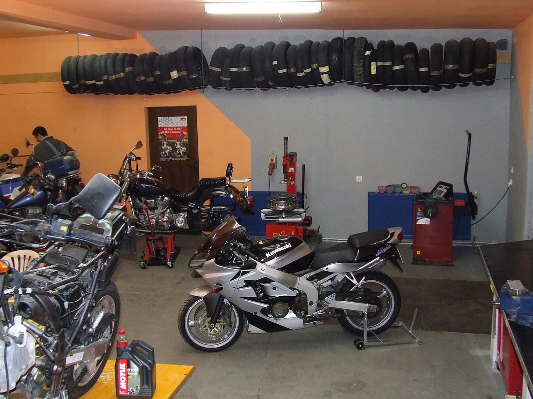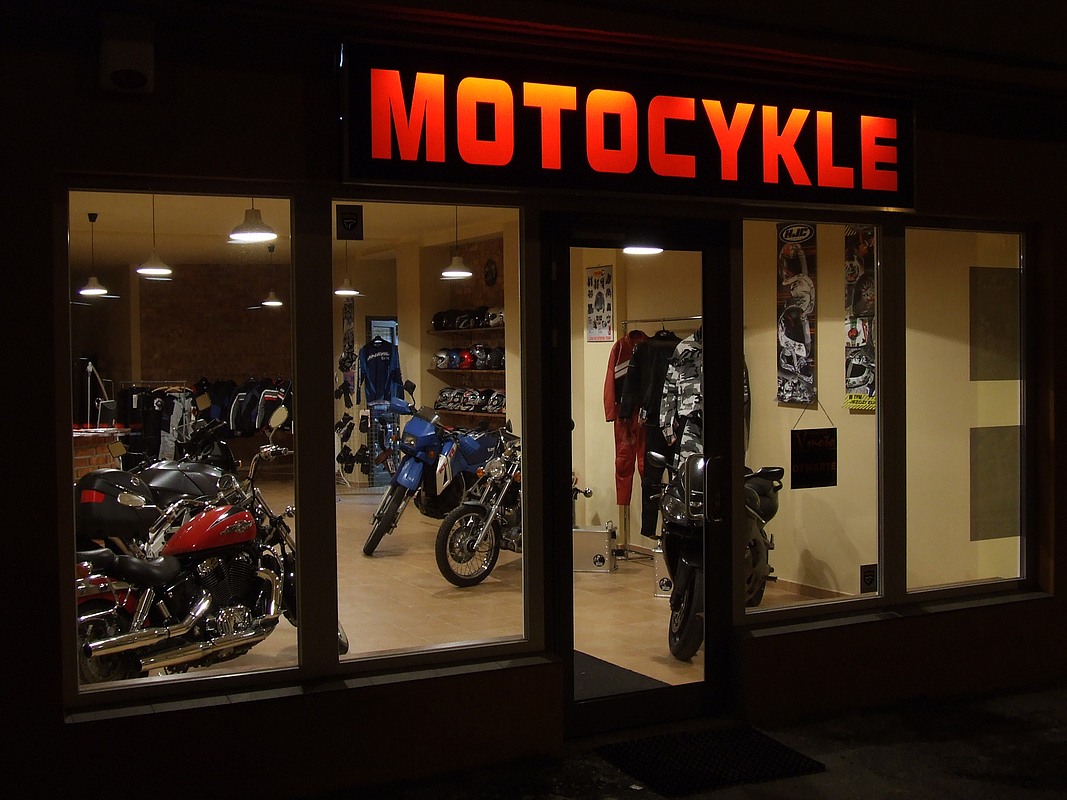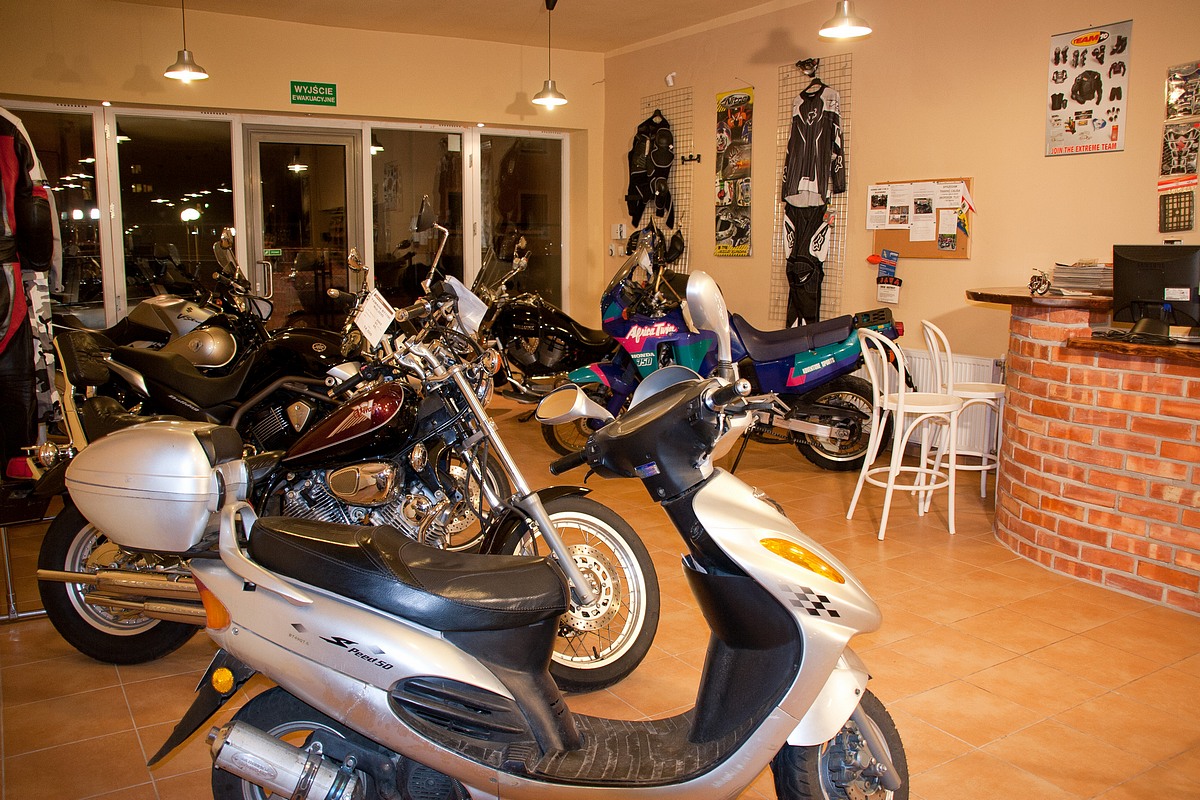 Salon i serwis motocyklowy z towarem i wyposażeniem