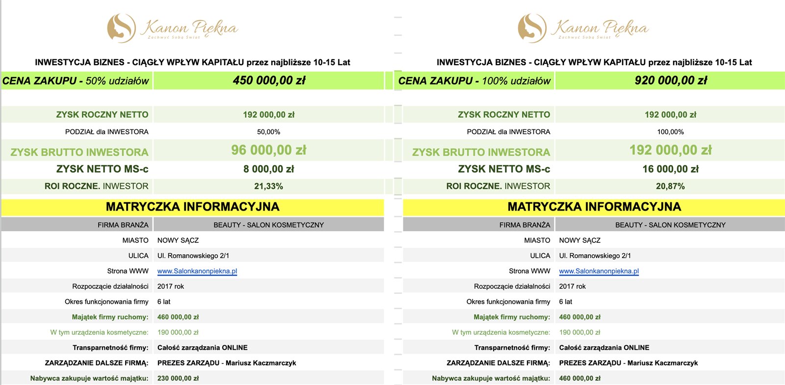 Salon Kanon Piękna - działający biznes powyżej 200 tys. netto zysku rocznego
