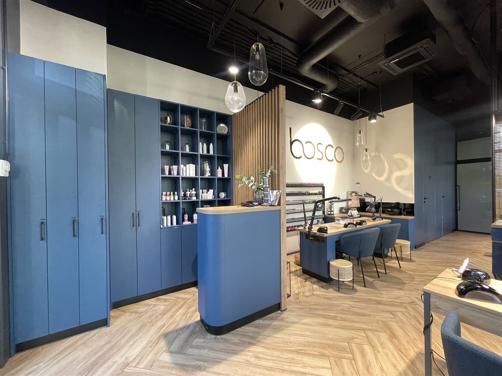 Lokal idealnie sprawdzi się dla barbera, fryzjera, gabinet kosmetyczny itp. Lokal otrzymaliśmy w stanie surowym zamkniętym. Wszystkie prace budowlane i remontowe wykonaliśmy od podstaw z dużą starannością o jakość surowców, mebli i wykończenia. Projekt lokalu został wykonany w stylu nowoczesnym w połączeniu z stylem loftowym. Przeważa granatowym kolor w połączeniu z czernią i zachowanymi stalowymi czarnymi