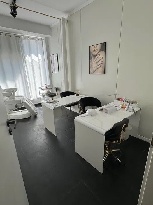 • W pełni wyposażone stanowiska do manicure i pedicure: Profesjonalne narzędzia do zabiegów, biurka, krzesła i fotele dla klientów oraz personelu.