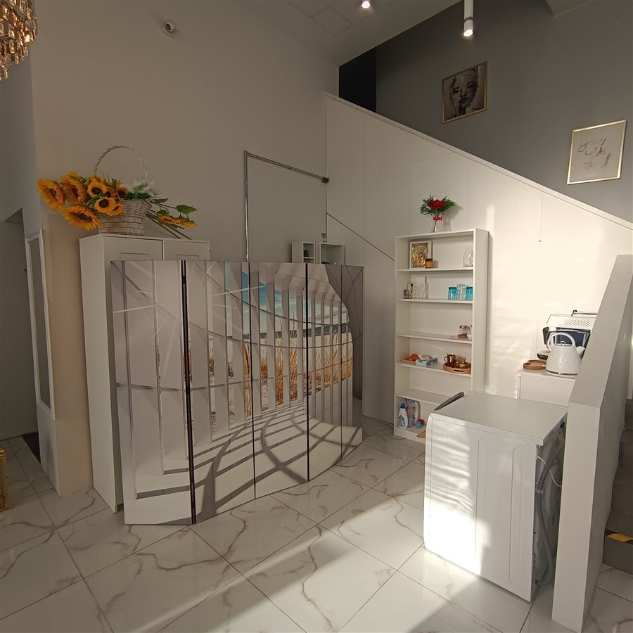 Lokal jest dwupoziomowy, z dużym salonem i recepcją, wygodną przestrzenią dla klienta. Hol jest bardzo duży, jasny z podwójnym oświetleniem. Na drugim piętrze znajduje się pokój dla personelu i 3 gabinety, każdy gabinet posiada bakteriobójczą lampę ultrafioletową, nawilżacz powietrza. Okna nie wychodzą na hałaśliwą ulicę, więc w pomieszczeniach jest cicho, okna można bezpiecznie otworzyć, a klienci czują się spokojnie.