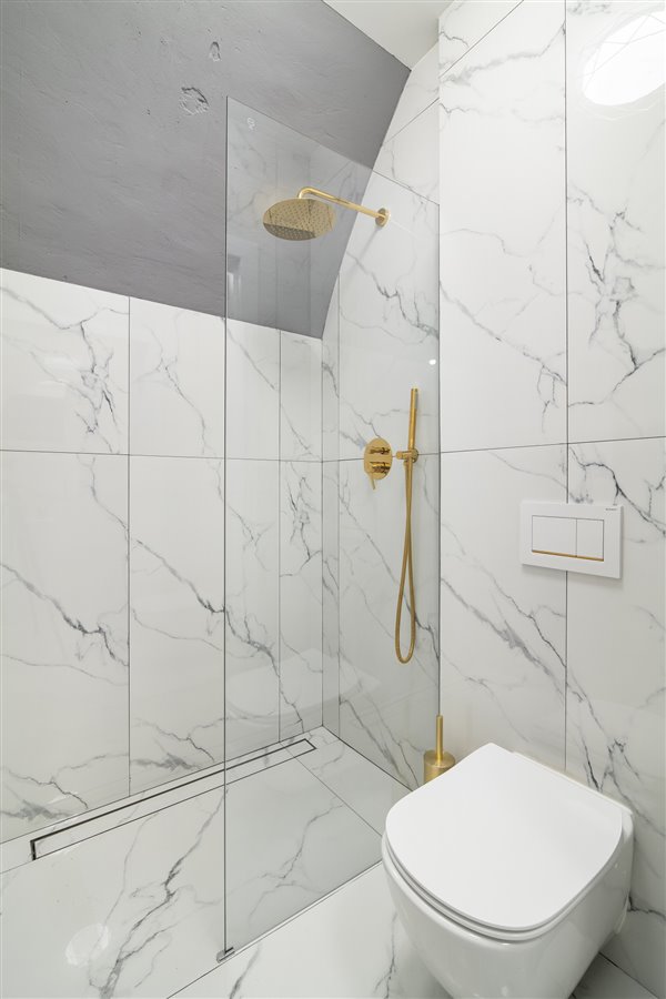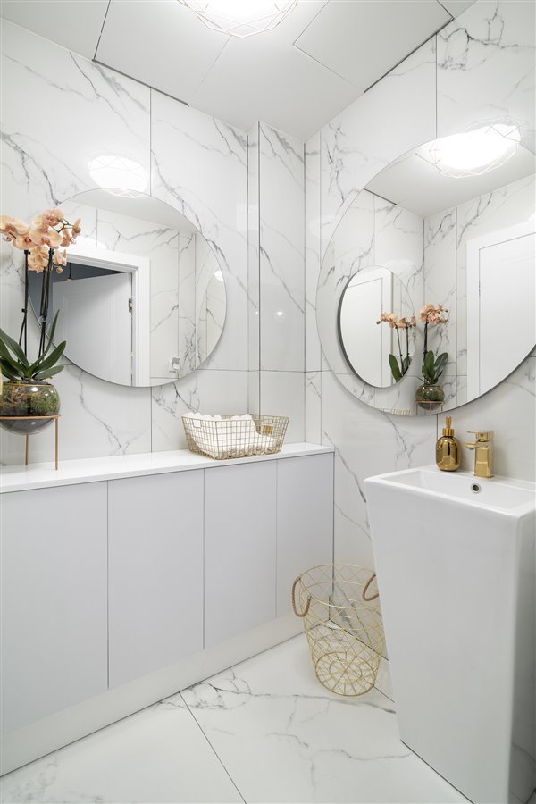 -łazienka z prysznicem (prysznic, dwa lustra, umywalka, komoda)