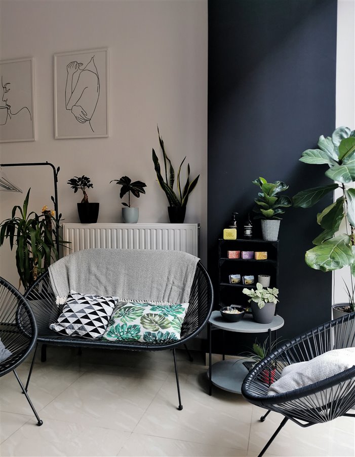 Salon jest nowoczesny, czysty i przytulny.