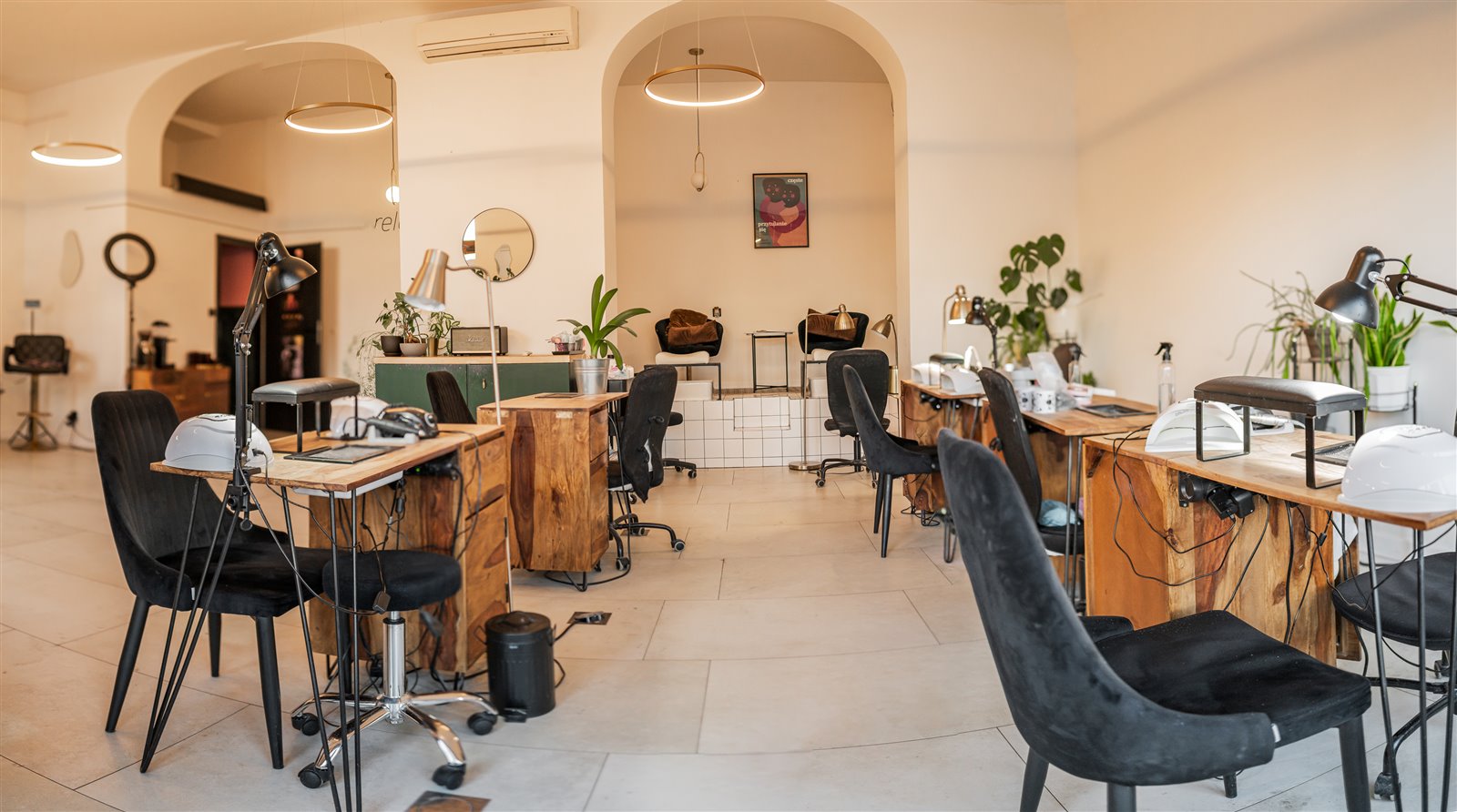 - 6 stanowisk do manicure (biurka, krzesła, lampy, dodatkowe wyposażenie)