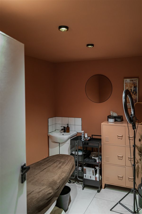 Dostępne pomieszczenia: sala główna, toaleta dla klientów, korytarz, pokój zabiegowy, zaplecze z tylnym wyjściem, toaleta dla personelu,