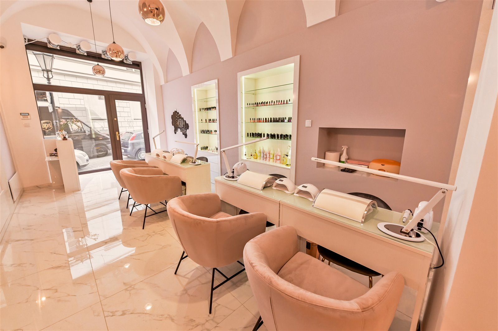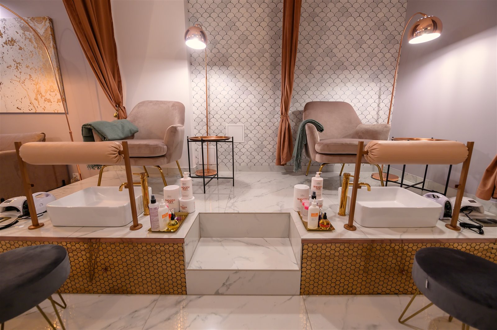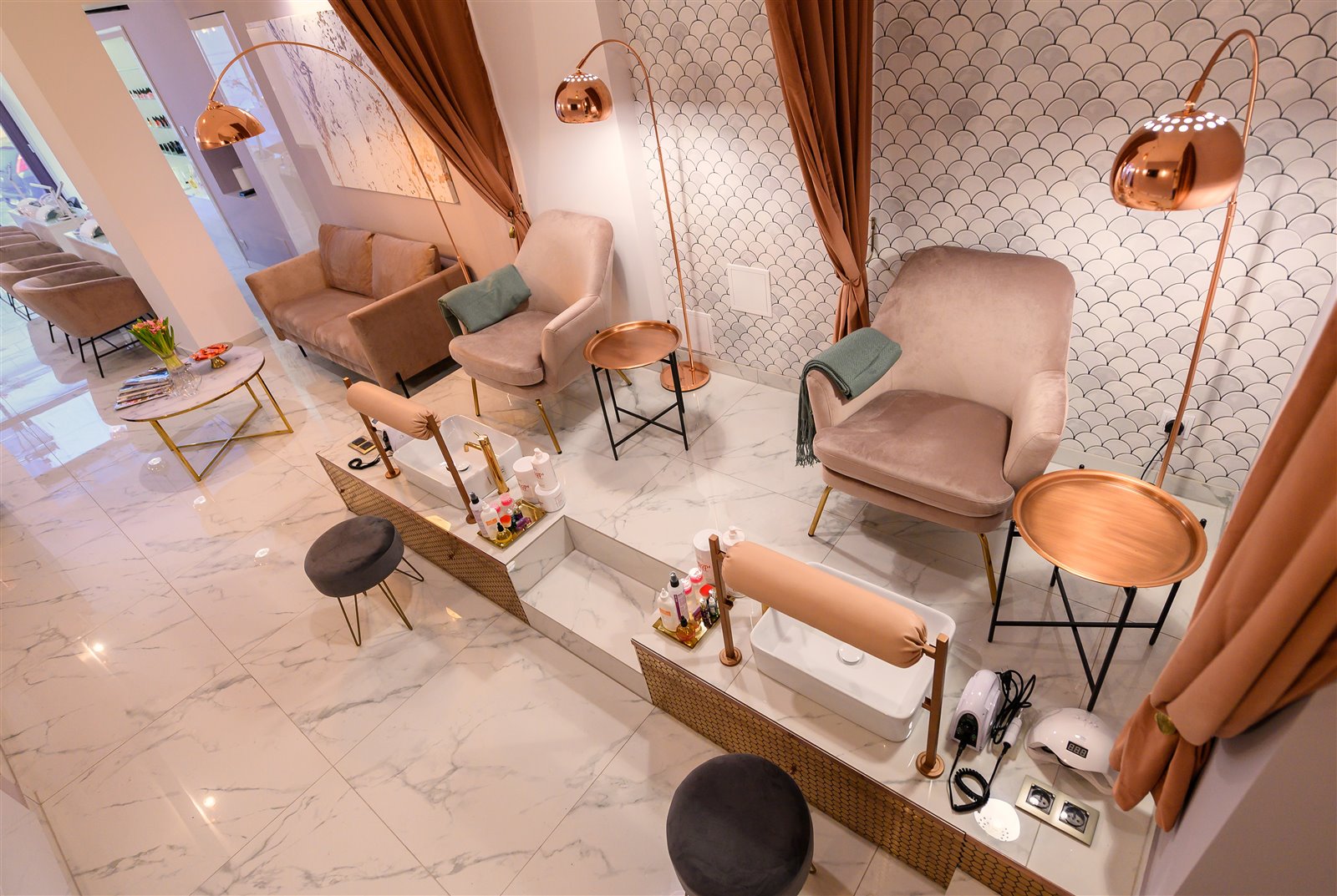 - 4 stanowiska do manicure z biurkami kosmetycznymi,