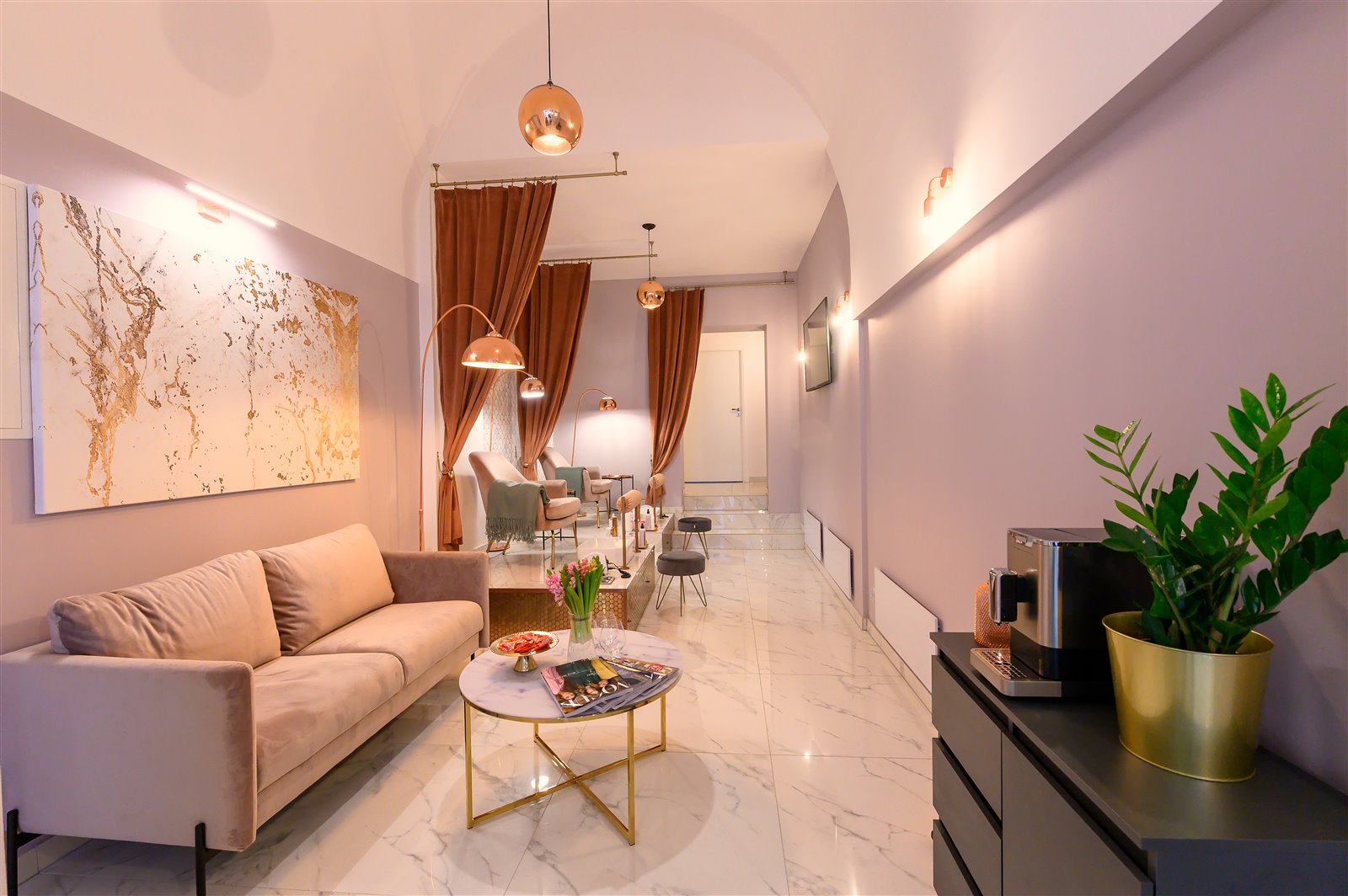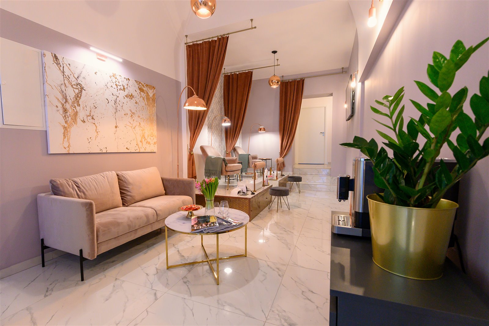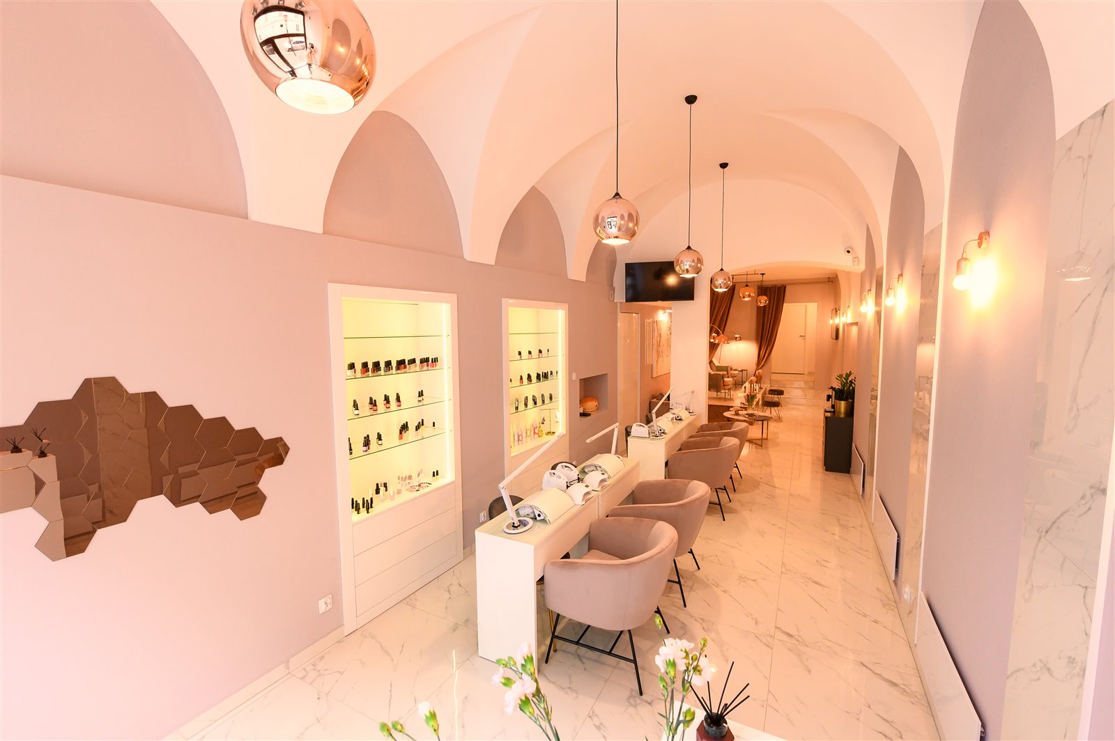 - 4 stanowiska do manicure z biurkami kosmetycznymi,