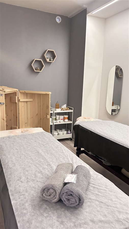 — dużego gabinetu do masaży dla par, wyposażonego w prysznic, umywalkę i fitosaunę