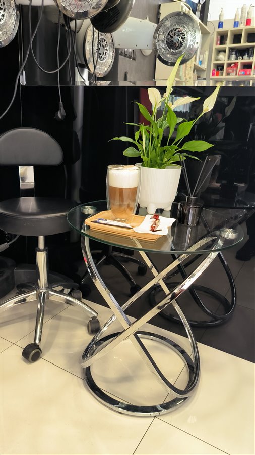 - otwartej przestrzeni, gdzie mieszczą się w pełni wyposażone 2 stanowiska fryzjerskie