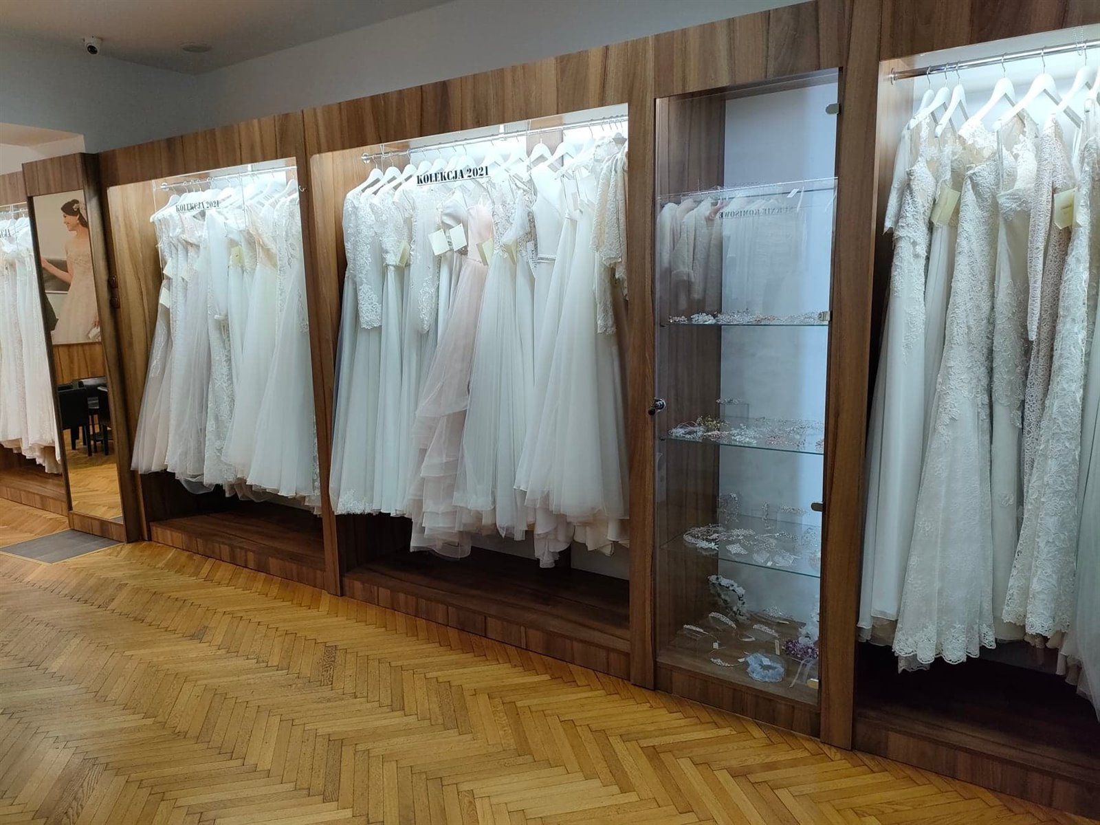 W ofercie wliczone jest wyposażenie lokalu: oświetlenie dostosowane do ekspozycji w salonie, meble (szafy ekspozycyjne, lada, fotele dla klientów (8szt.), stoliki (4 szt.), w pełni wyposażone dwie przymierzalnie z dużymi lustrami i szafami na dodatki, dwie maszyny do poprawek (owerlok i stębnówka przemysłowa) manekiny ok. 25szt. Możliwość odstąpienia także całego towaru - ok. 100szt. sukni ślubnych i dodatki takie jak spięcia, biżuteria i okrycia ślubne. Lokal jest urządzony i gotowy do prowadzenia działalności.