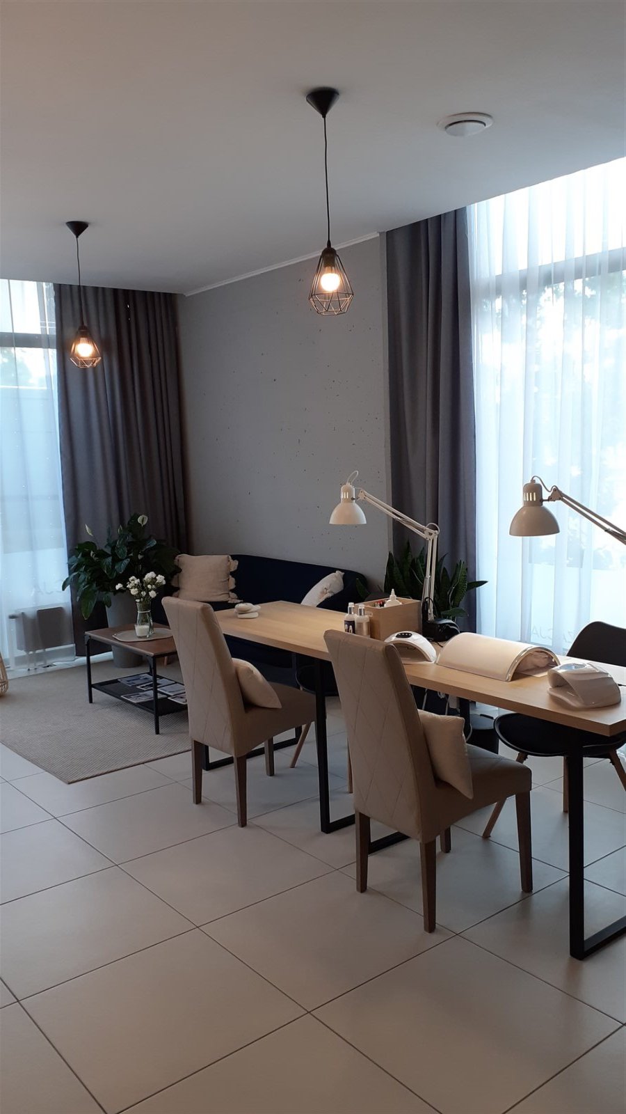 Salon działa i ciągle przybywa nowych klientów. Naprzeciwko salonu są 3 miejsca parkingowe przypisane do lokalu, co jest rzadkością na nowych osiedlach. Osiedle to Pozytywny Mokotów.