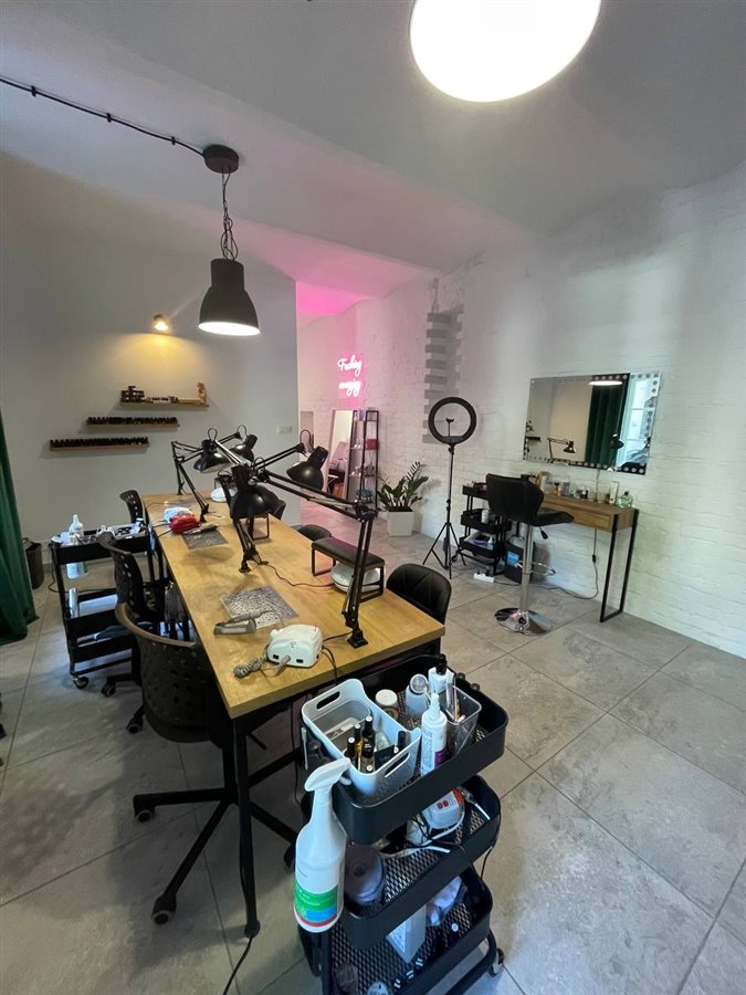 Lokal ok 50 m2. 4 stanowiska do manicure, 2 do pedicure, stanowisko do regulacji brwi.