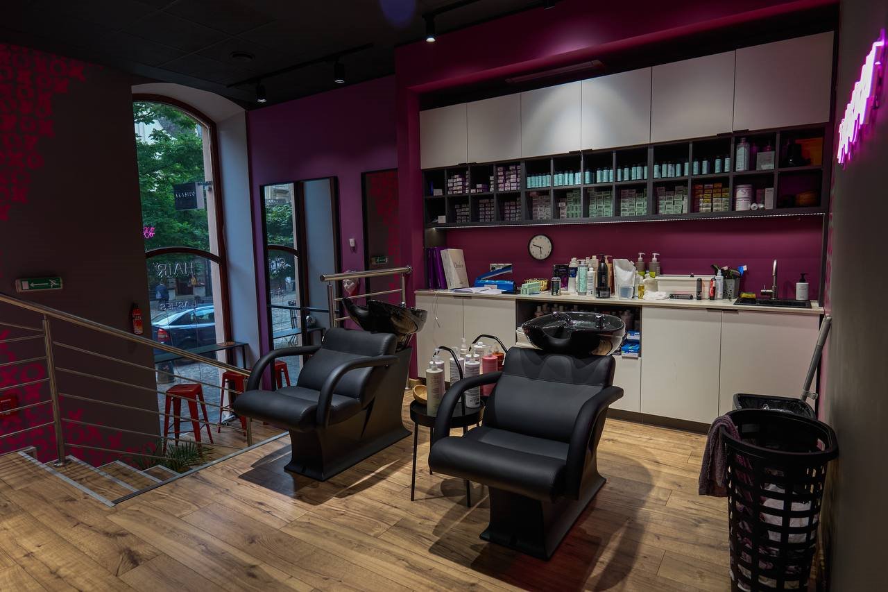 - Strefa hair: 4 stanowiska kolorystyczne z dwoma myjniami głowy;