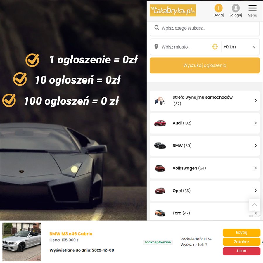 Witam, mam do sprzedania serwis ogłoszeń motoryzacyjnych z atrakcyjną domeną takabryka – serwis stoi od roku i cieszy się coraz większą popularnością.