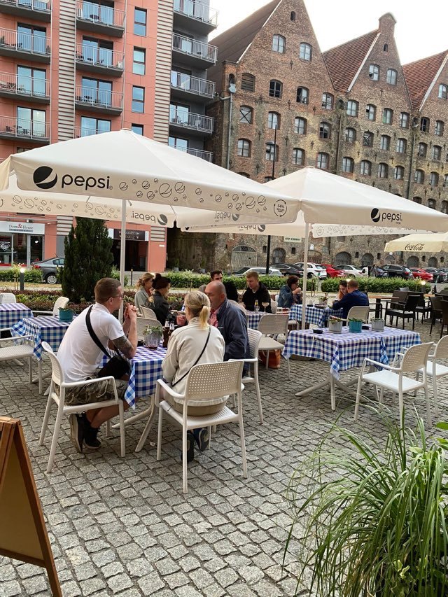 Z przodu lokalu - słońce południowo-zachodnie gwarantuje pełne obłożenie stolików do późnych godzin. Lokalizacja lokalu stacjonarnego bardzo atrakcyjna, bo nie tylko w środku nowej części centrum Gdańska, ale i w pobliżu nowo powstałych osiedli z apartamentami dla turystów. Co istotne - nie ma żadnego lokalu sushi w bliskiej okolicy.