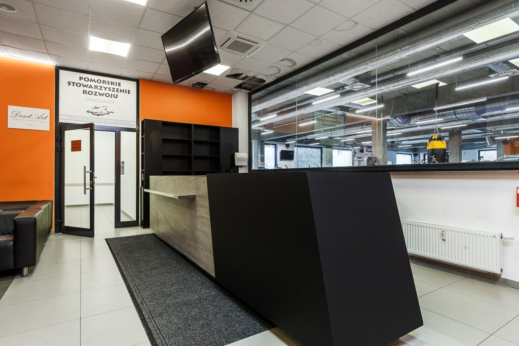 - wyposażenie recepcji (lady, meble);