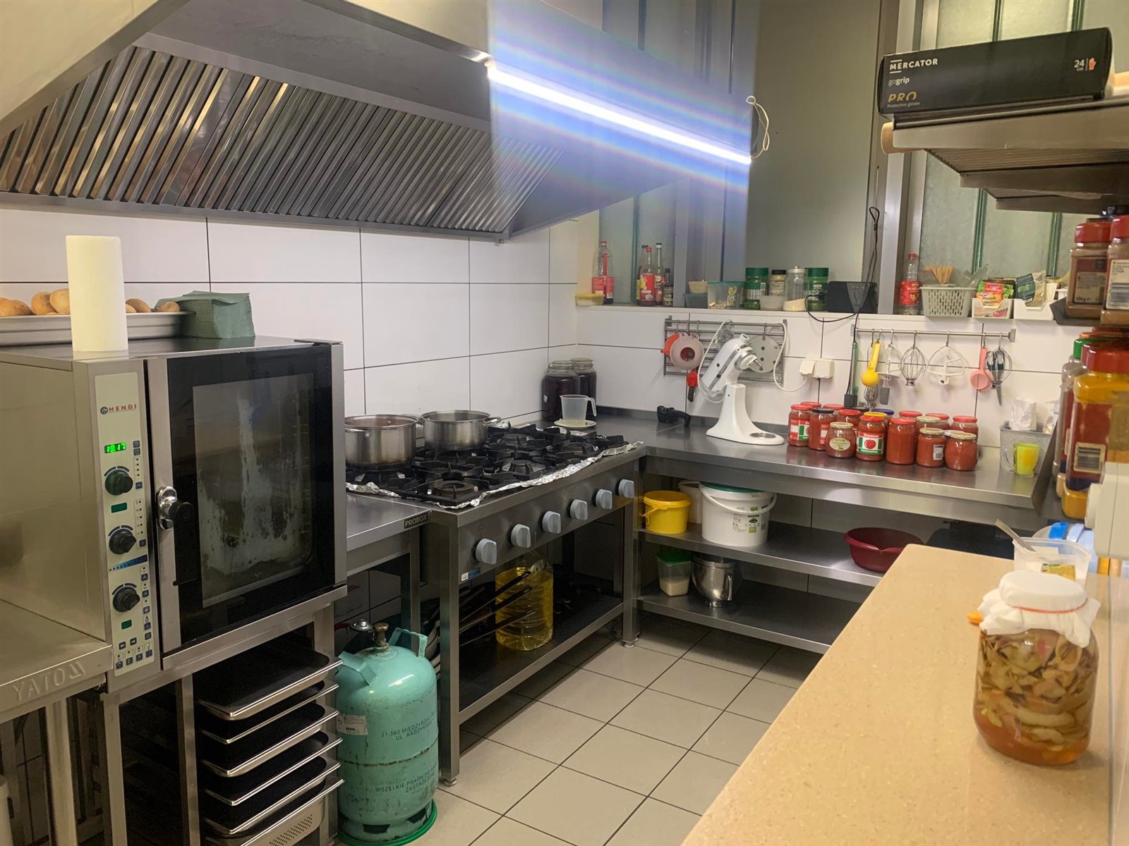 W skład całości wchodzą całe wyposażenie kuchni, (Sprzęty z 2019 roku kupowane jako nowe - kuchnia gazowa 6 palnikowa, chłodziarki, chłodziarka szokowa, piec konwekcyjno-parowy, zlewy, wilk do mięsa, mikser, stoły stalowe i inne typu garnki, patelnie, pojemniki) "warzywniaka" (chłodziarka i chłodziarko zamrażarka, obieraczka, szatkownica, zlew, stoły stalowe) magazynu, pom. gospodarczego, szatni, wc dla pracowników, sali sprzedaży ( duża lada chłodnicza oraz lodówka/witryna, szafki, regał). Ponadto 2 klimatyzację, cała instalacja nawiewno/wywiewna, książka hccp i wszystko co pozwala płynnie pracować po przejęciu sklepu i kuchni. Lokal bez zastrzeżeń ze strony sanepidu.
