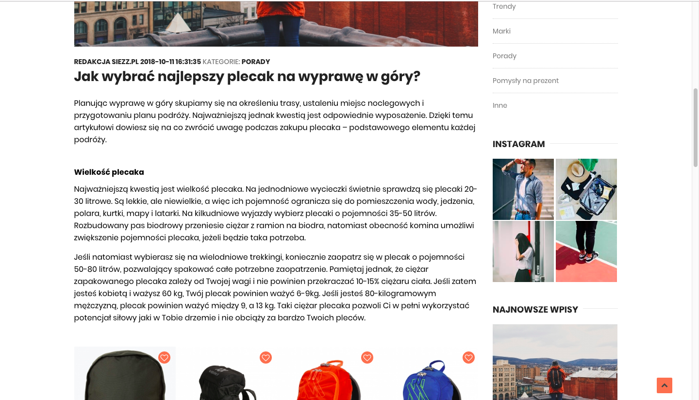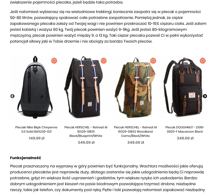 c) Slider produktowy, który umożliwia wyświetlanie asortymentu pomiędzy treścią w artykułach.