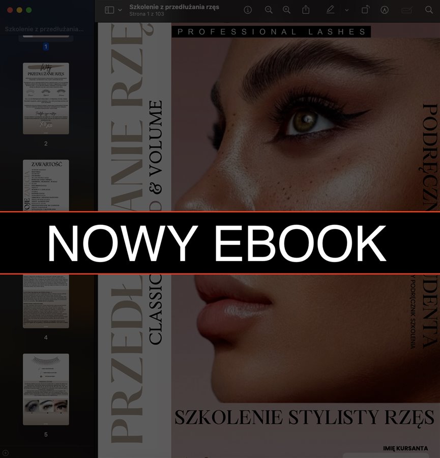 E-book z autorskim szkoleniem marki z przedłużania rzęs, inspirowany zachodnimi metodami praktykowanymi w USA. Szkolenie jest napisane przez doświadczoną wieloletnią stylistkę rzęs.