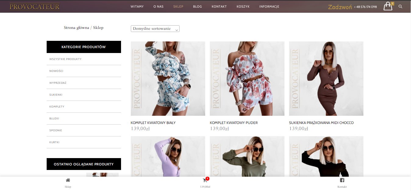 Sprzedam sklep [dane ukryte] (postawiony na [dane ukryte] - domena jest opłacona do lutego 2022 roku), który ma na sprzedaż takie kategorie ubrań jak kurtki, komplety, sukienki, spodnie, dresy, spódnice, bluzki, a wszystkie ubrania zamawiane są z polskich szwalni. Jeżeli osoba kupująca zajmie się kompleksowo marketingiem i codziennym prowadzeniem sklepu to te zyski stanowczo pójdą w górę. Sprzedajemy prosty, przetestowany biznes, który generuje zyski na wysokich marżach produktowych. Sklep jest przejrzysty, czytelny i spójny wizualnie, ale można go dostosować oczywiście według swoich potrzeb. Możliwość wprowadzenia asortymentu odzieży męskiej, akcesoriów, obuwia lub innych.
