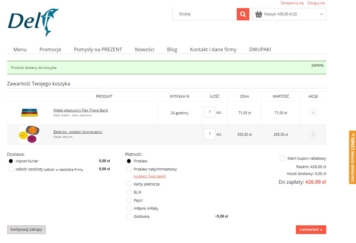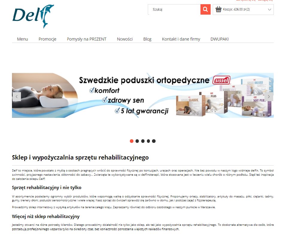 Jest w nim duży potencjał rozwojowy ponieważ można poszerzyć ofertę o np. o dochodowe aparaty do fizykoterapii czy większy sprzęt rehabilitacyjny. Sklep działa pod domeną http://www.delf-sklep.pl więc jest możliwość zmiany jego charakteru na bardziej sportowy osuwając jedne produkty a dodając inne.