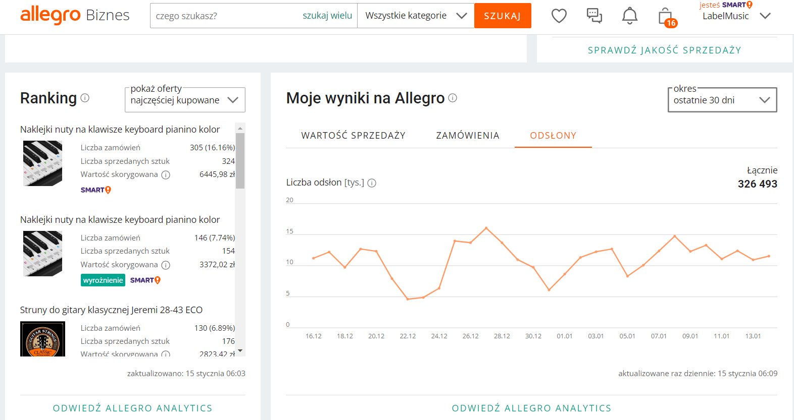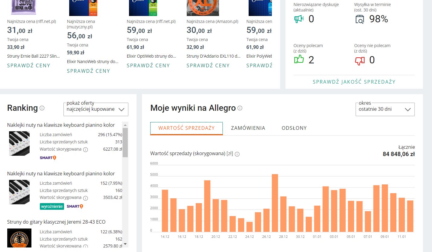 Sprzedam działający pod własną marką sklep internetowy + sklep Allegro z materiałami edukacyjnymi do nauki gry na instrumentach muzycznych (produkty unikatowe, stworzone i zaprojektowane przeze mnie, brak konkurencji). Sklep posiada całe zaplecze towarowe niezbędne i pomocne przy nauce gry na instrumentach muzycznych.
