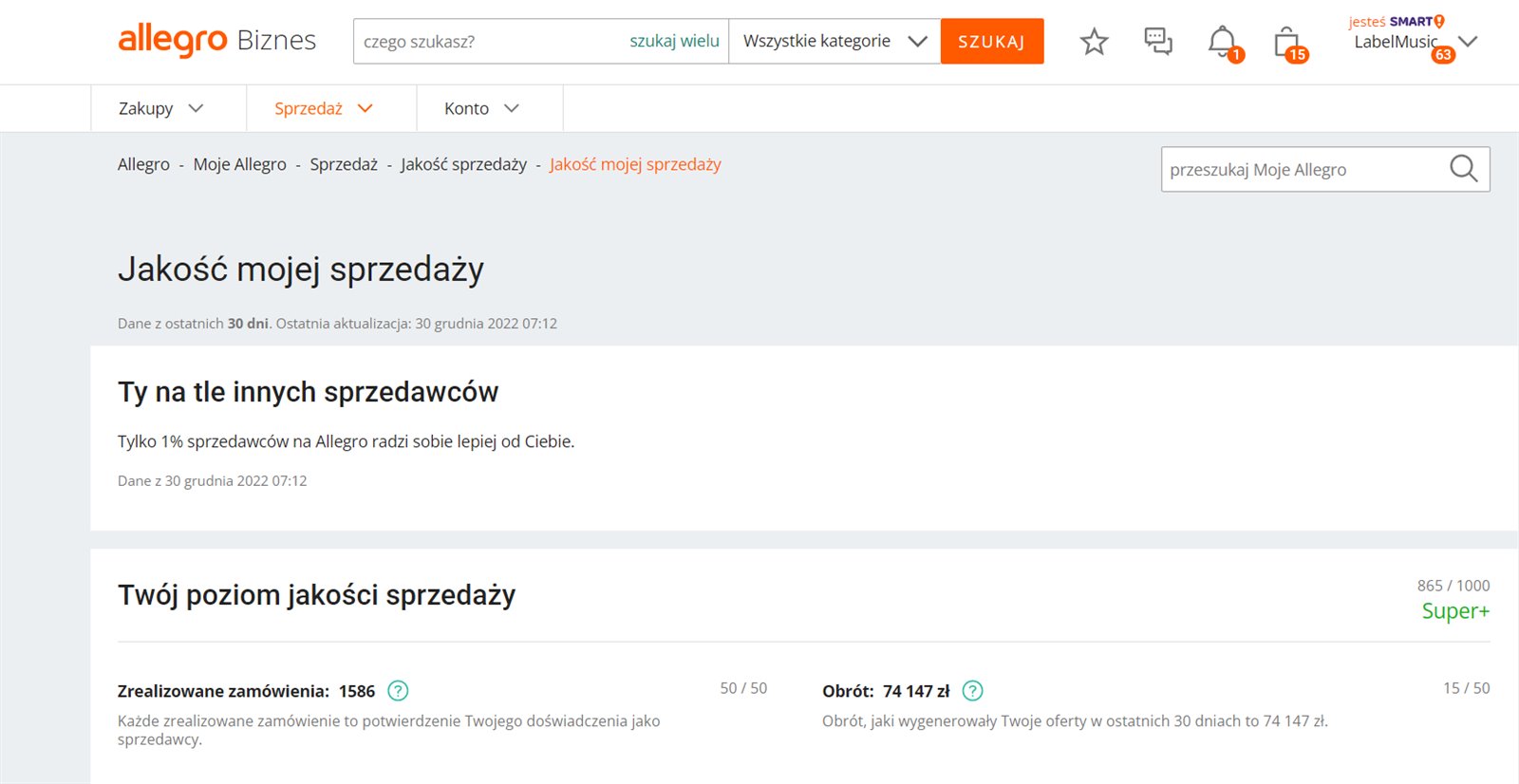 Sklep Allegro pod nazwą marki. Działający od 2 lat. Ponad 1350 komentarzy, wszystkie 100% pozytywne. Sklep na koniec roku posiadał statystyki na poziomie sprzedaży Super+ oraz informację „tylko 1% sprzedawców na allegro radzi sobie lepiej od Ciebie” co przy licznie aktywnie sprzedających użytkowników na poziomie 117.000 tysięcy daje bardzo dobrą pozycję startową dla nowego inwestora. Aktualnie statystyka waha się w przedziale 1-3% ze względy na słodzenie po świątecznie.