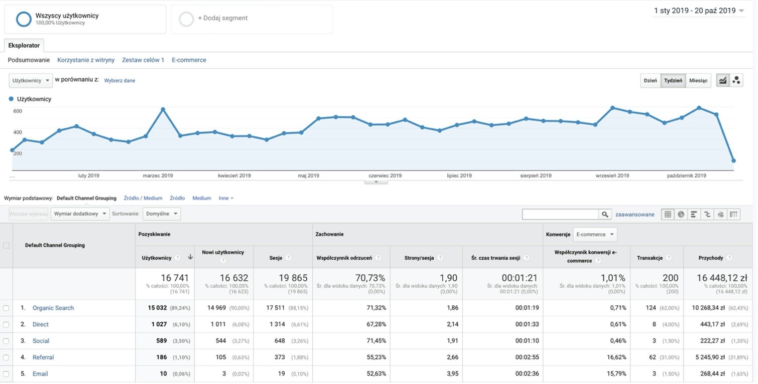 38% wzrost ruchu organicznego od stycznia 2019 do września 2019.