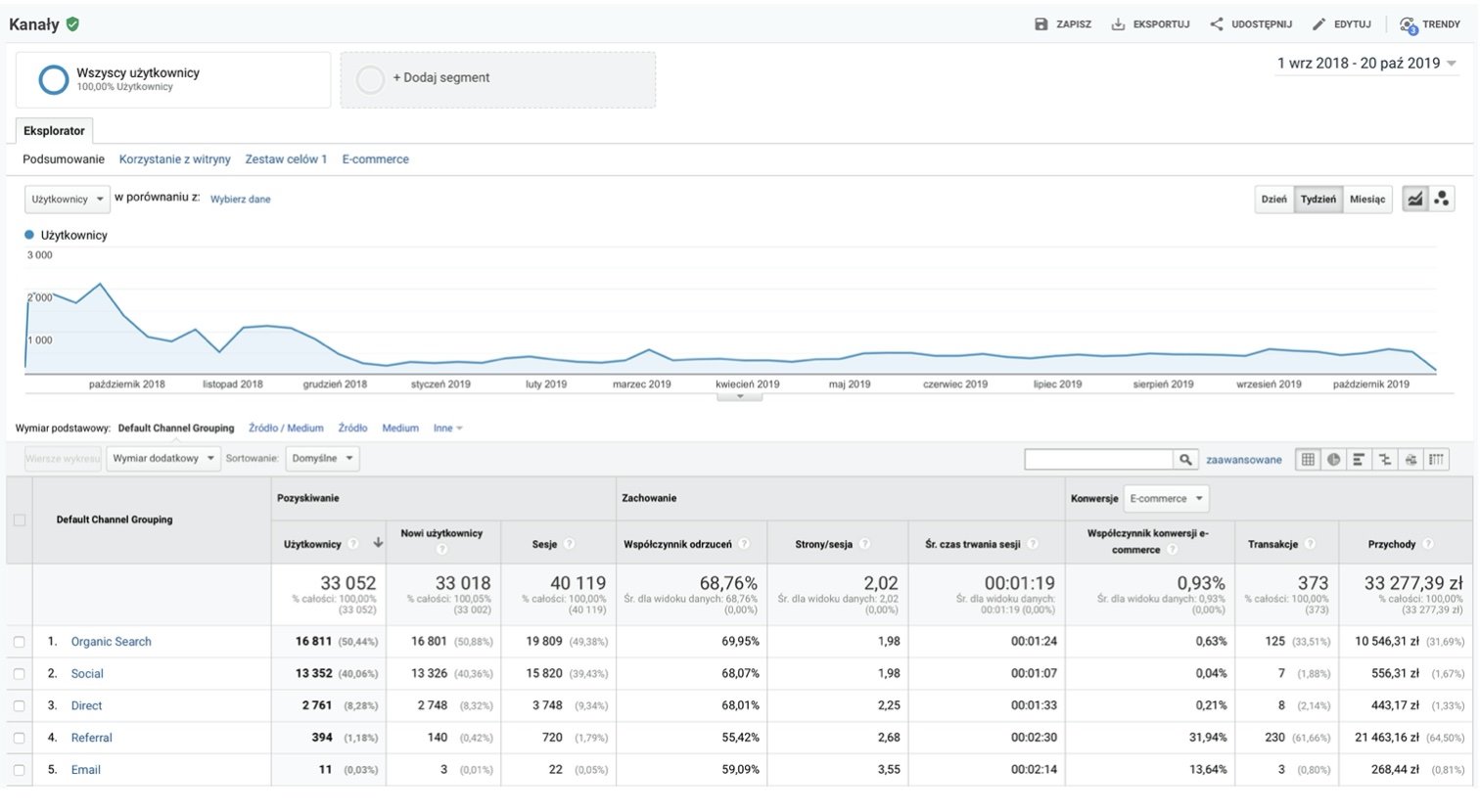 Całościowy ruch od 1.09.2018 do 21.10.2019 - 33 000 unikalnych użytkowników