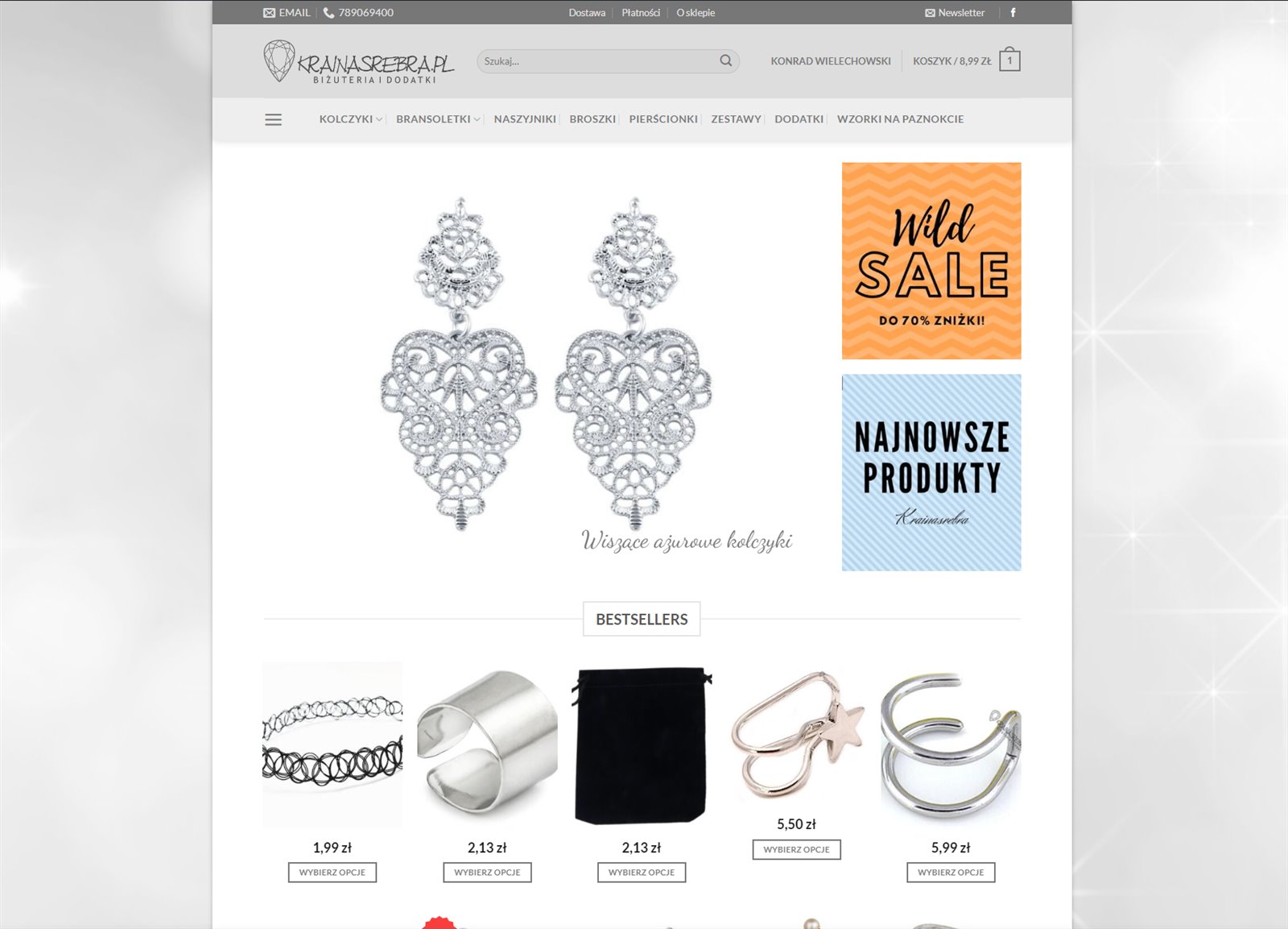 Sklep internetowy z biżuterią Krainasrebra.pl z towarem + konta