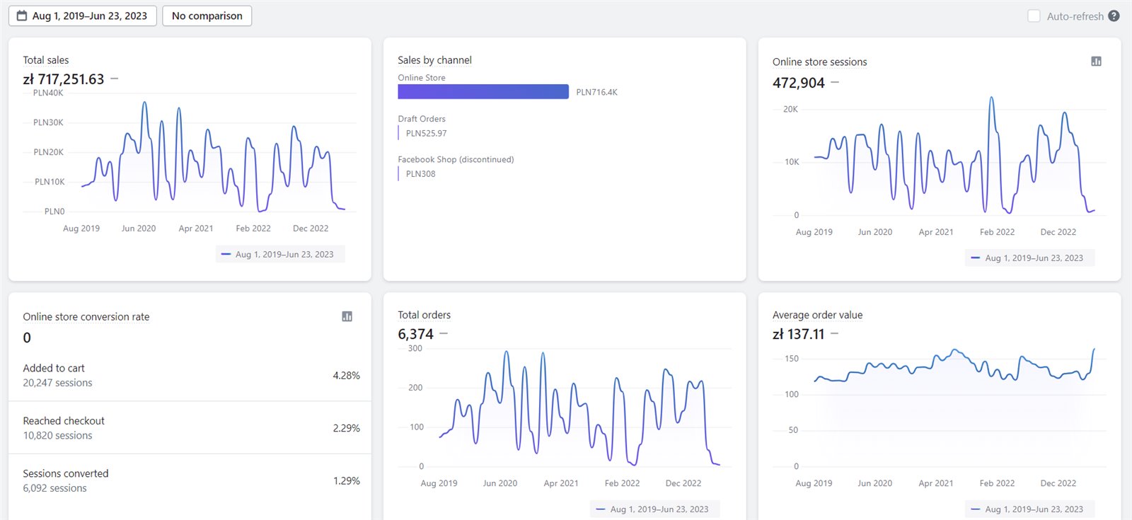 - 2022 rok drop/własny towar: 174K przychodu,