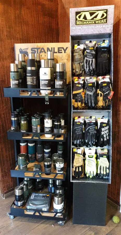 Odzież renomowanej amerykańskiej marki Carhartt jest odzieżą roboczą (w usa), u nas kupują ją do normalnego codziennego użytku lecz są też klienci, którzy kupują ją do pracy. Jest również dostęp do wszystkich innych marek, które posiada dystrybutor. Stanley - amerykańskie termosy i kubki termiczne, Mechanix - amerykańskie rękawice robocze, bardzo duży wybór. Gerber - amerykańskie noże, multitoole, maczety, krzesiwa. Lodówki pasywne igloo - również aerykańskie.