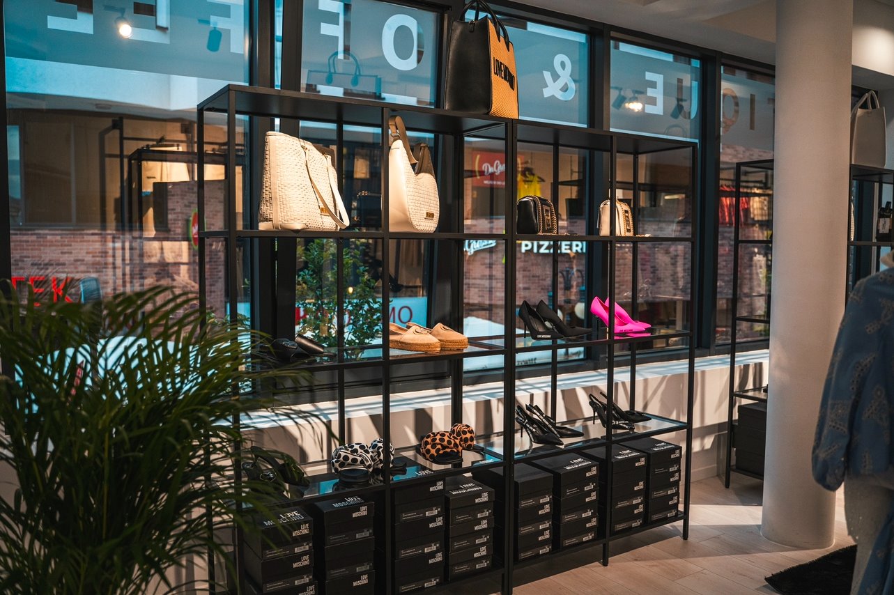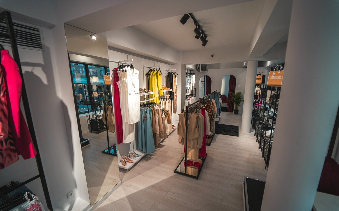 - pełny asortyment odzieży, w tym: sukienki, spódnice, bluzki, koszule, topy, swetry, bluzy, płaszcze, marynarki, spodnie, rajstopy, obuwie i torebki włoskich marek oraz kosmetyki.