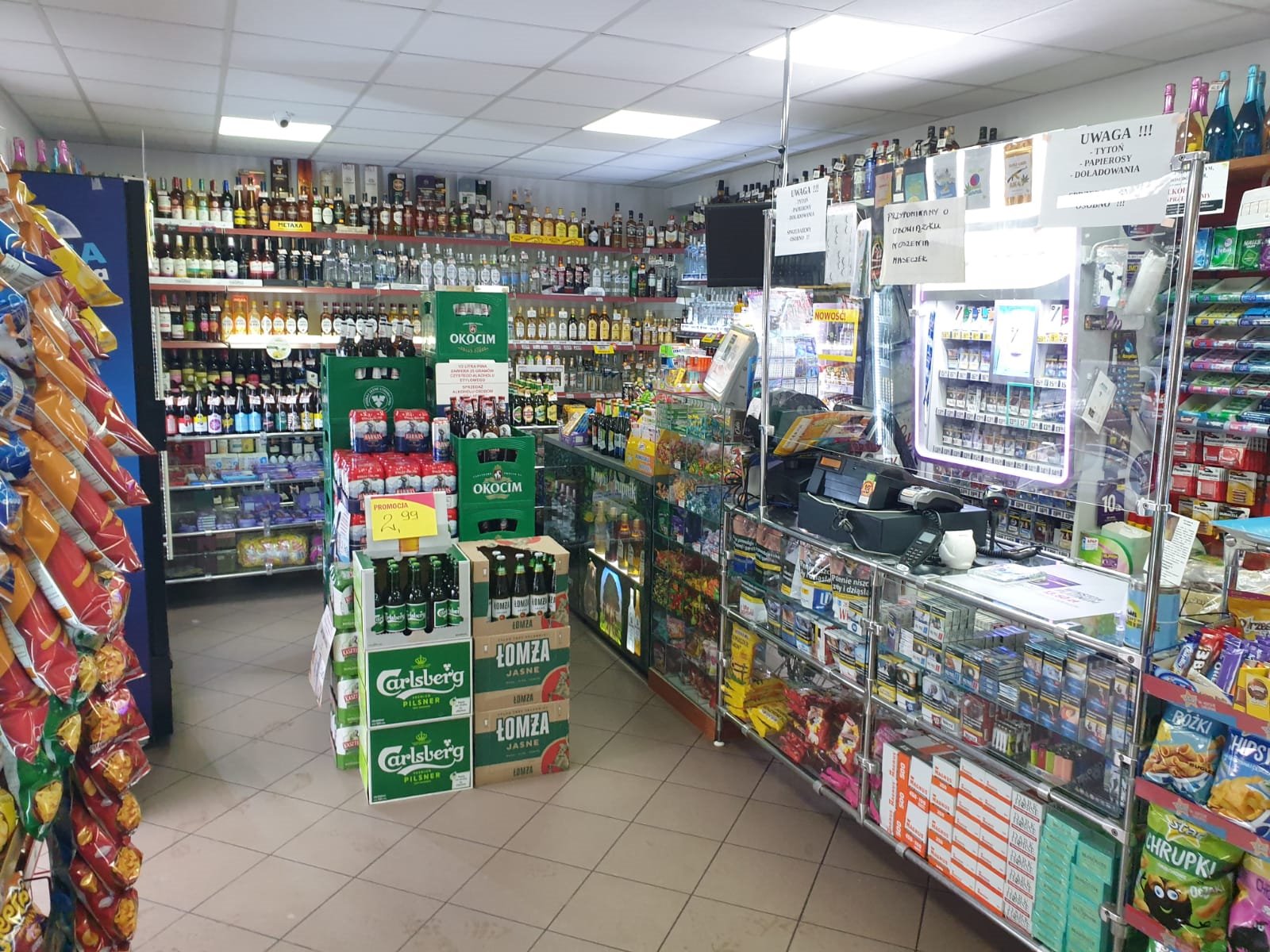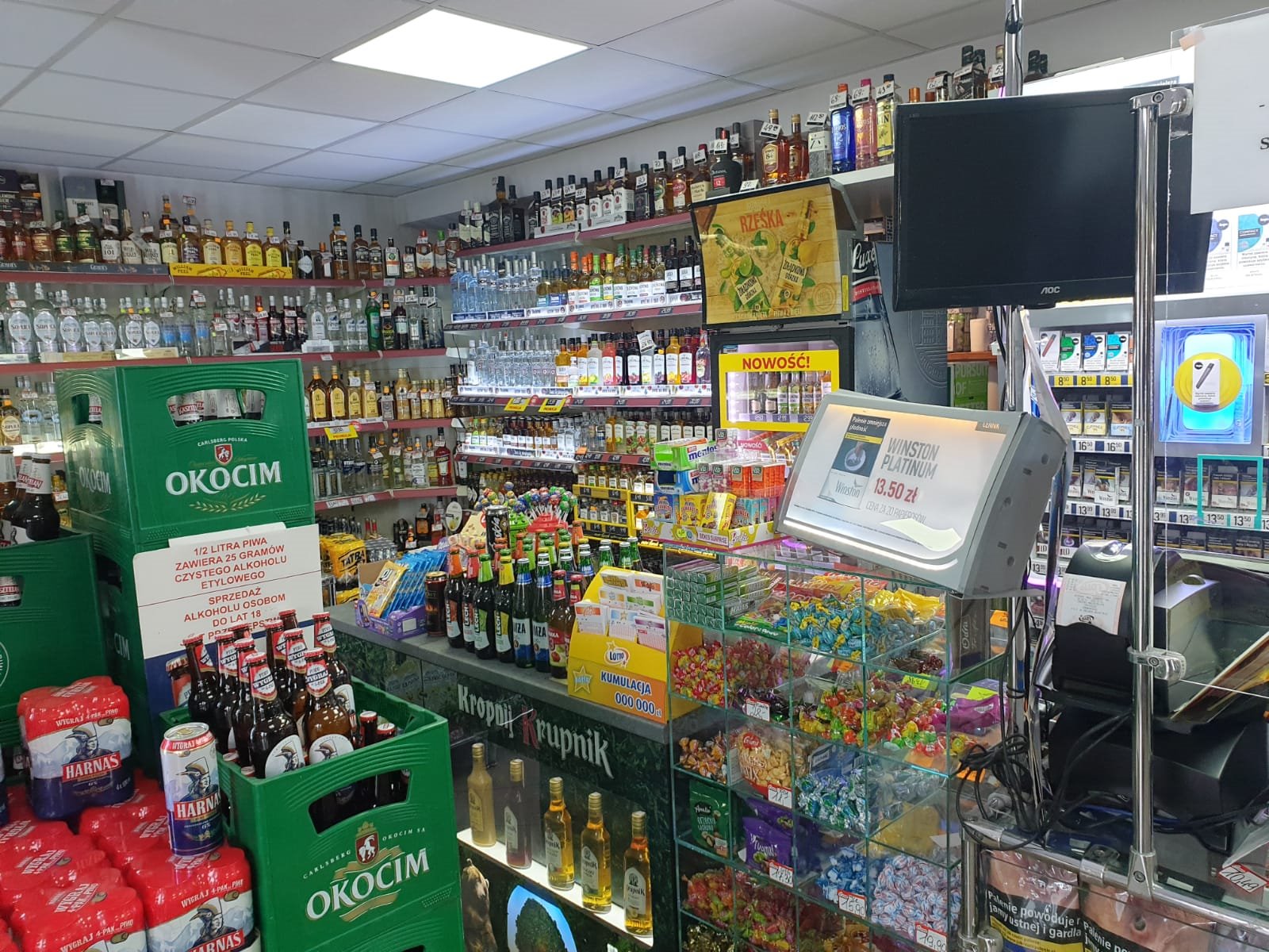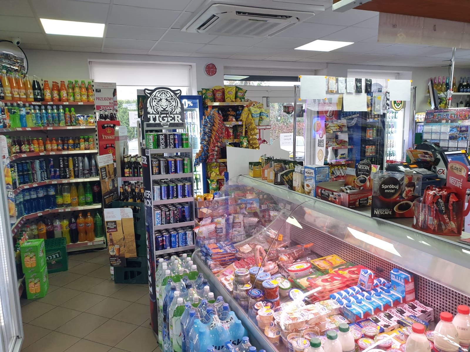 Sklep posiada: duży magazyn, monitoring, klimatyzację, regały, ogrzewanie podłogowe gazowe, punkt obsługi lotto.