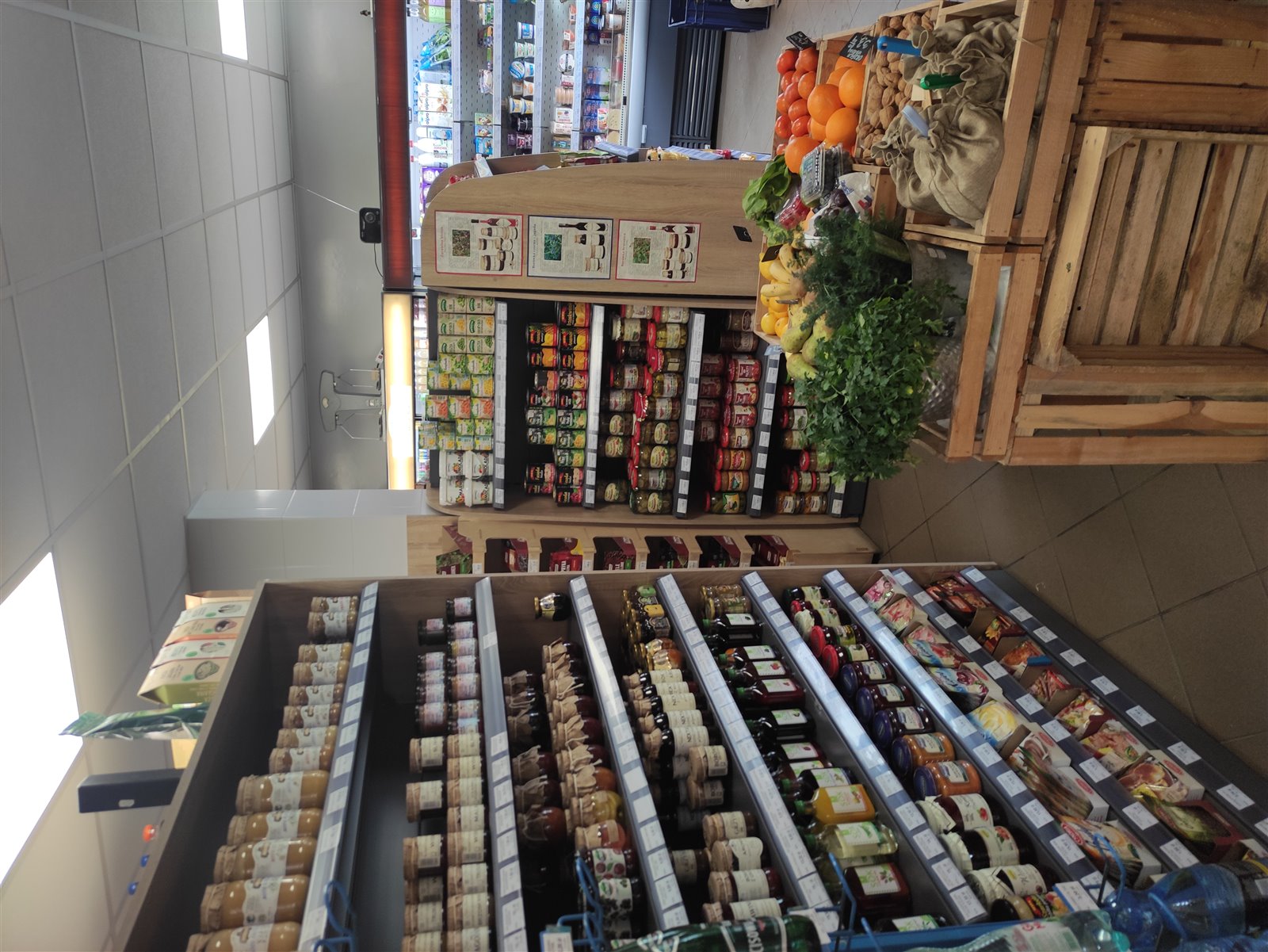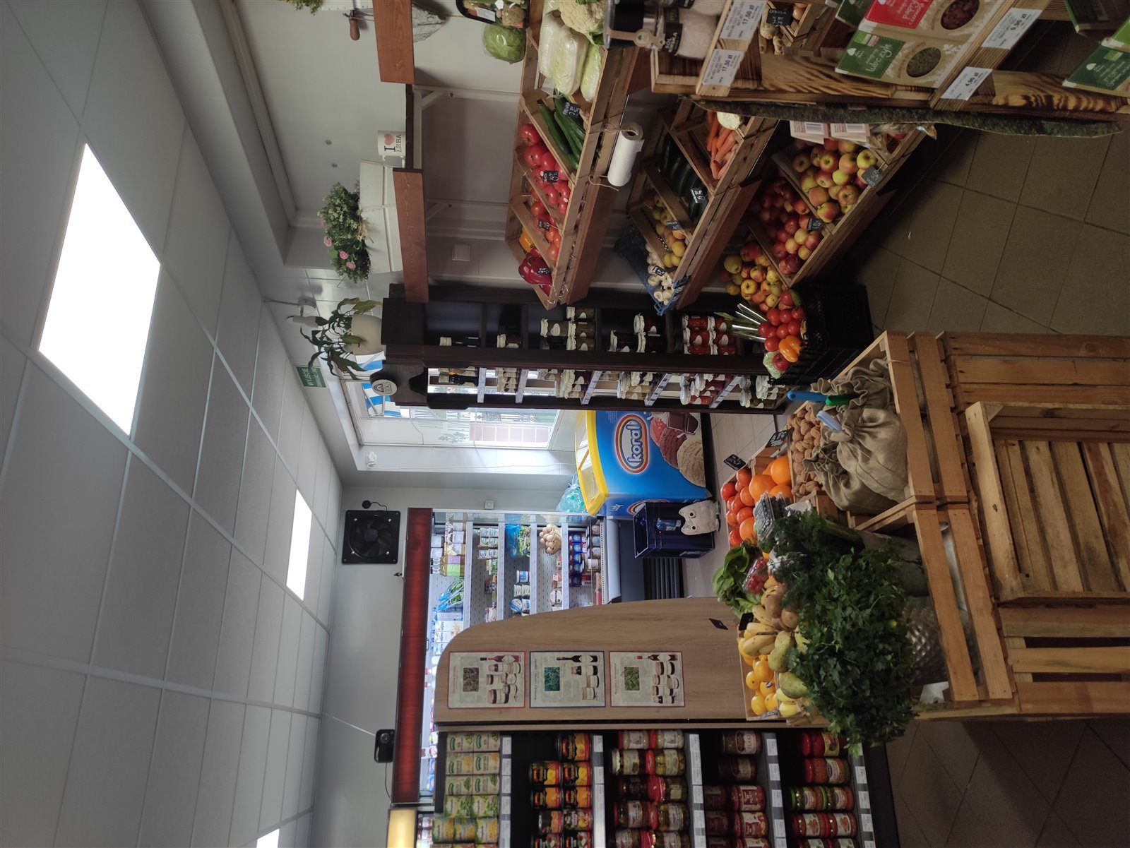 Latem warzywniak jest wystawiany na zewnątrz, zaprojektowaliśmy w tym celu drzwi z regałami, które latem otwieramy, co sprawia, że jesteśmy jeszcze bardziej widoczni dla przejezdnych miejscowych i turystów.