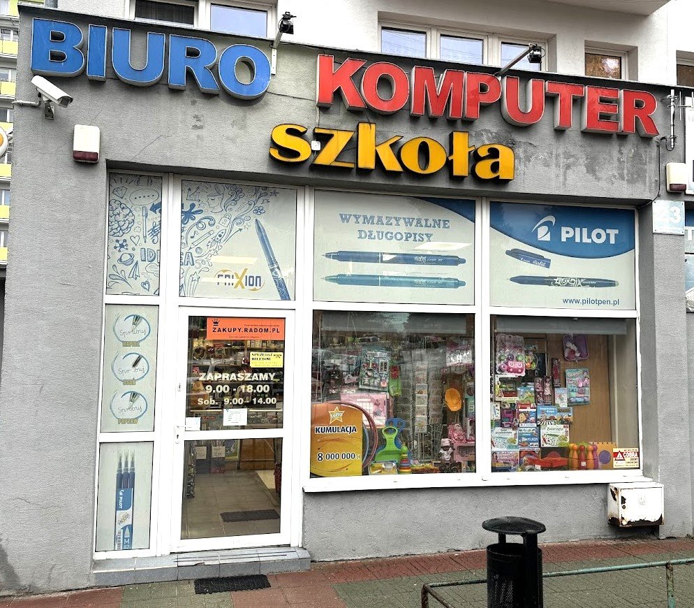 - Sklep typu szkolno-biurowo-papierniczy-zabawki.