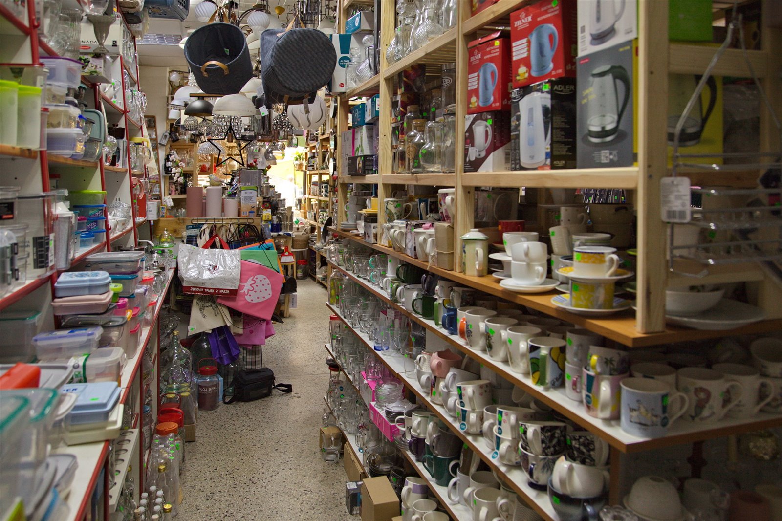 Sklep wielobranżowy - garnki, porcelana, szkło, artykuły elektryczne i ozdobne.