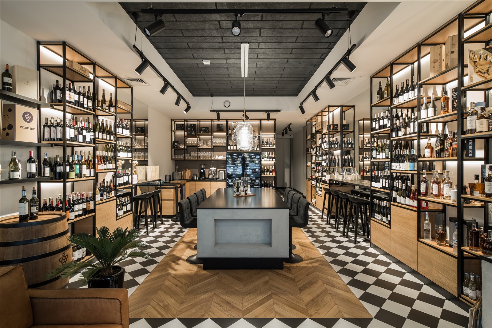 -> Sklep: specjalistyczne lodówki na wina, stanowisko sprzedaży (system POS), system kamer (dostęp z telefonu), wbudowany system nagłośniania