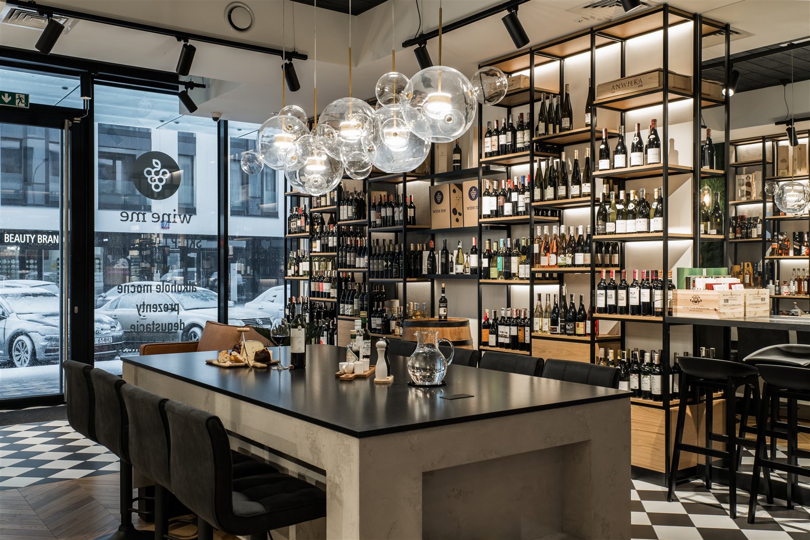 W pełni wyposażony lokal w eleganckim i efektownym stylu - 72 m2 z częścią sprzedażowo-winebarową, zapleczem socjalnym i zmywalnią