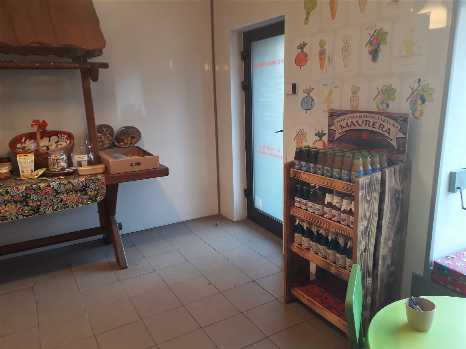 Urządzenia i wyposażenie lokalu: lada drewniana, regały, stół wiejski, witryna chłodnicza x 3 szt, mała lodówka na oleje, piec gazowy, waga, kuchenka gazowa, tłocznia do tłoczenia olejów, stół stalowy, maszyna do szycia poduszek z gryki oraz towary handlowe (wg stanu remanentu).