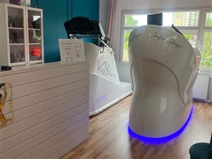• Nowoczesne wyposażenie – 4 łóżka opalające, w tym jedna kabina stojąca, a także dodatkowe urządzenia do zabiegów kosmetycznych, takie jak Sculptor Quattro X (4 głowice do elektrostymulacji mięśni) oraz Kriolipoliza CryoCell (4 głowice do zabiegów kriolipolizy).