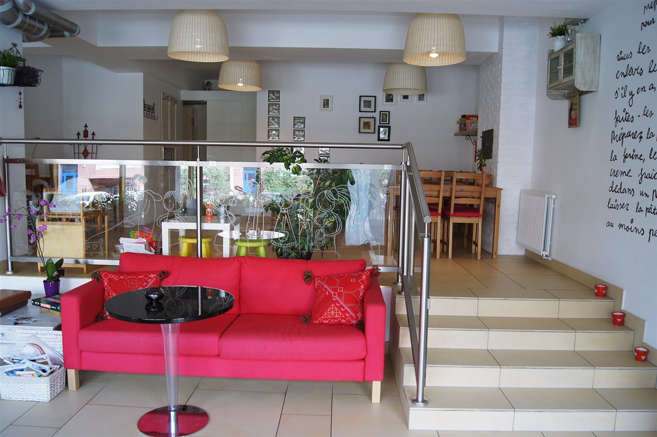 Bistro jest w pełni wyposażone. Lokal wynajmowany (umowa na czas określony, z możliwością przedłużenia umowy). Wyposażenie lokalu: piękne, nietuzinkowe witryny wystawowe, lodówki, wyparzarka, miesiarka do 10l, drukarka fiskalna. Całość wyposażenia w części dla klientów (stoliki, krzesła, kanapa etc.). Lokal wyposażony w dostosowany do warunków system wentylacyjny, telefon, kącik dla dzieci, terminal do płatności kartą. Bistro mieści się na parterze.