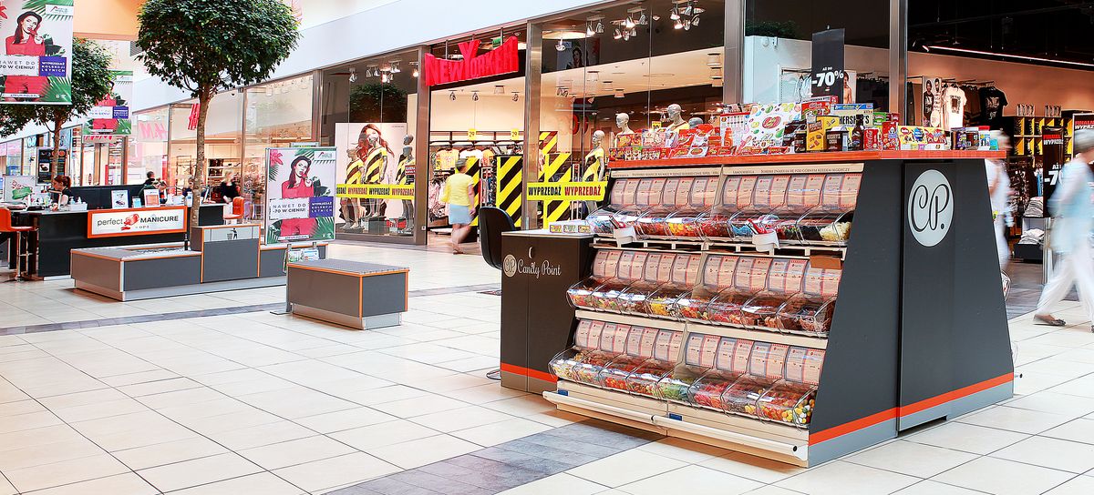 - wyspy handlowej ze słodyczami z całego świata w Galerii Atrium Molo w Szczecinie,
