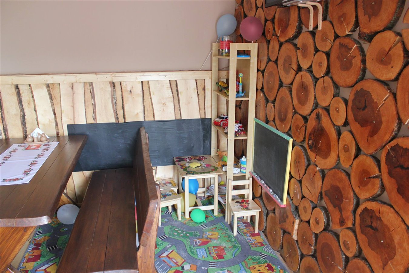 piec dwókomorowy do pizzy, opiekacz gazowy do kebaba, grill elektryczny, frytkownica, mikrofala, ekspres do kawy, zmywarka z wyparzarką, 7 lodówek, 2 zamrażarki, okap, telewizor, komputer z drukarką, mini wieża grająca, kasa fiskalna, stoły z ławami, krzesła, szafa socjalna, szklanki, kufle, talerze, sztućce, solniczki, pieprzniczki, obrusy, firanki, telefon stacjonarny, komórkowy, ociekacz, regały, szafki, szafy, półki biurko, klimatyzacja, kurtyna powietrzna, noże gastronomiczne, bemary, miski, deski do krojenia, łopaty do pizzy, ścierki, zmywaki, mopy, szczotki, kosze na śmieci, torby na pizze, torba na kebab, kącik zabawowy z zabawkami dla dzieci