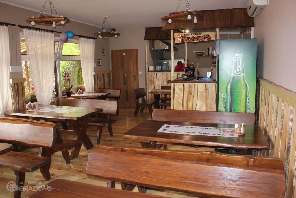 Pizzeria jest kompletnie wyposażona w niezbędny sprzęt taki jak: piec dwókomorowy do pizzy, opiekacz gazowy do kebaba, grill elektryczny, frytkownica, mikrofala, ekspres do kawy, zmywarka z wyparzarką, 7 lodówek, 2 zamrażarki, okap, telewizor, komputer z drukarką, mini wieża grająca, kasa fiskalna, stoły z ławami, krzesła, szafa socjalna, szklanki, kufle, talerze, sztućce, solniczki, pieprzniczki, obrusy, firanki, telefon stacjonarny, komórkowy, ociekacz, regały, szafki, szafy, półki biurko, klimatyzacja, kurtyna powietrzna, noże gastronomiczne, bemary, miski, deski do krojenia, łopaty do pizzy, ścierki, zmywaki, mopy, szczotki, kosze na śmieci, torby na pizze, torba na kebab, kącik zabawowy z zabawkami dla dzieci itp.