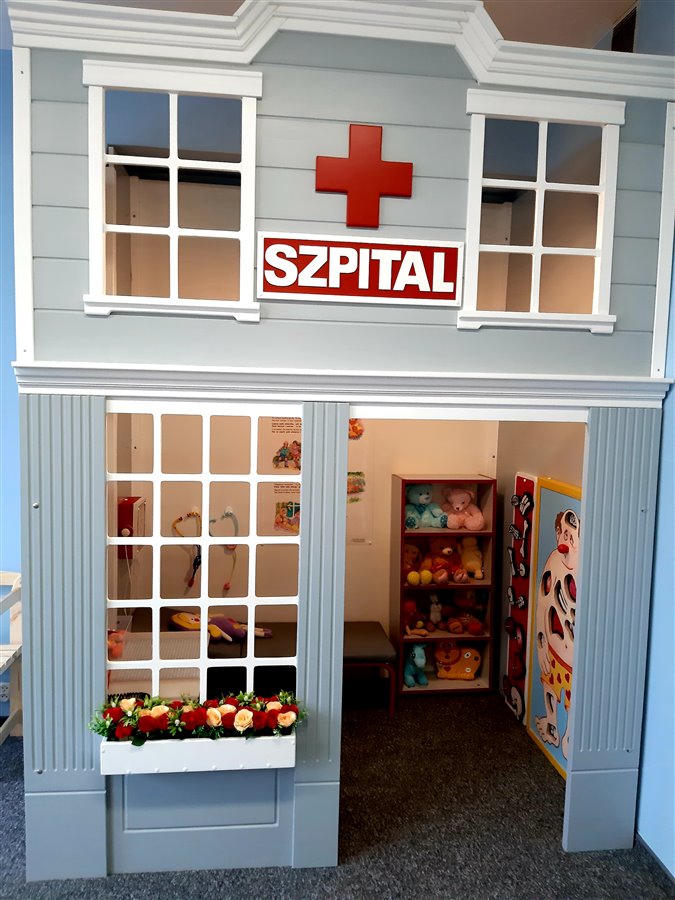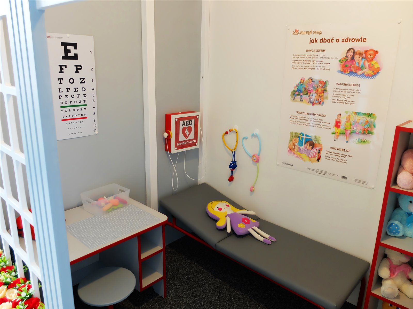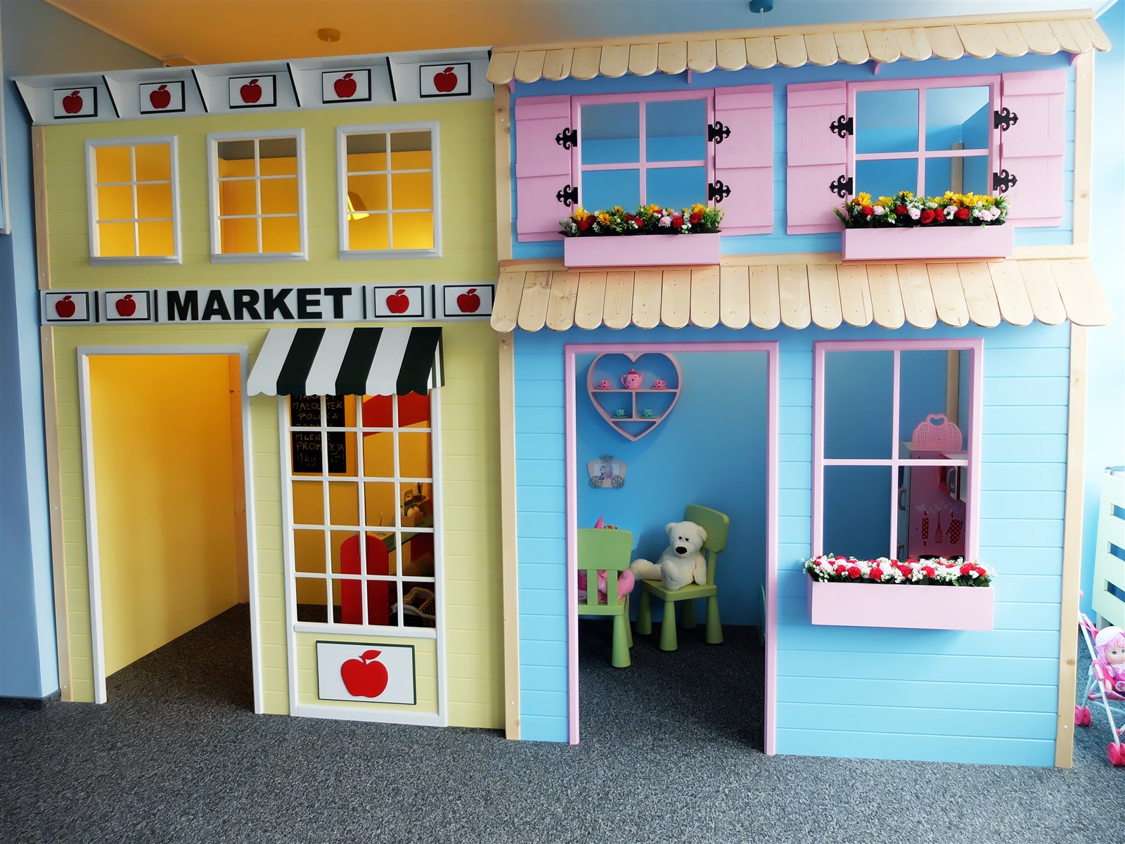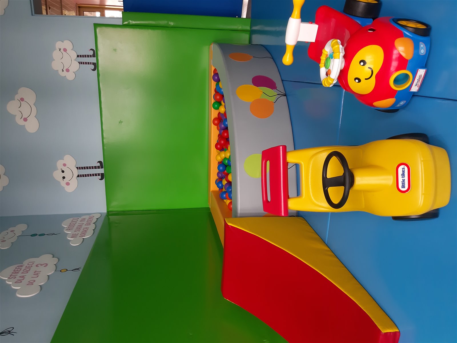 • strefa malucha (miękkie kształtki, basen z kulkami, zabawki, bezpieczna podłoga),