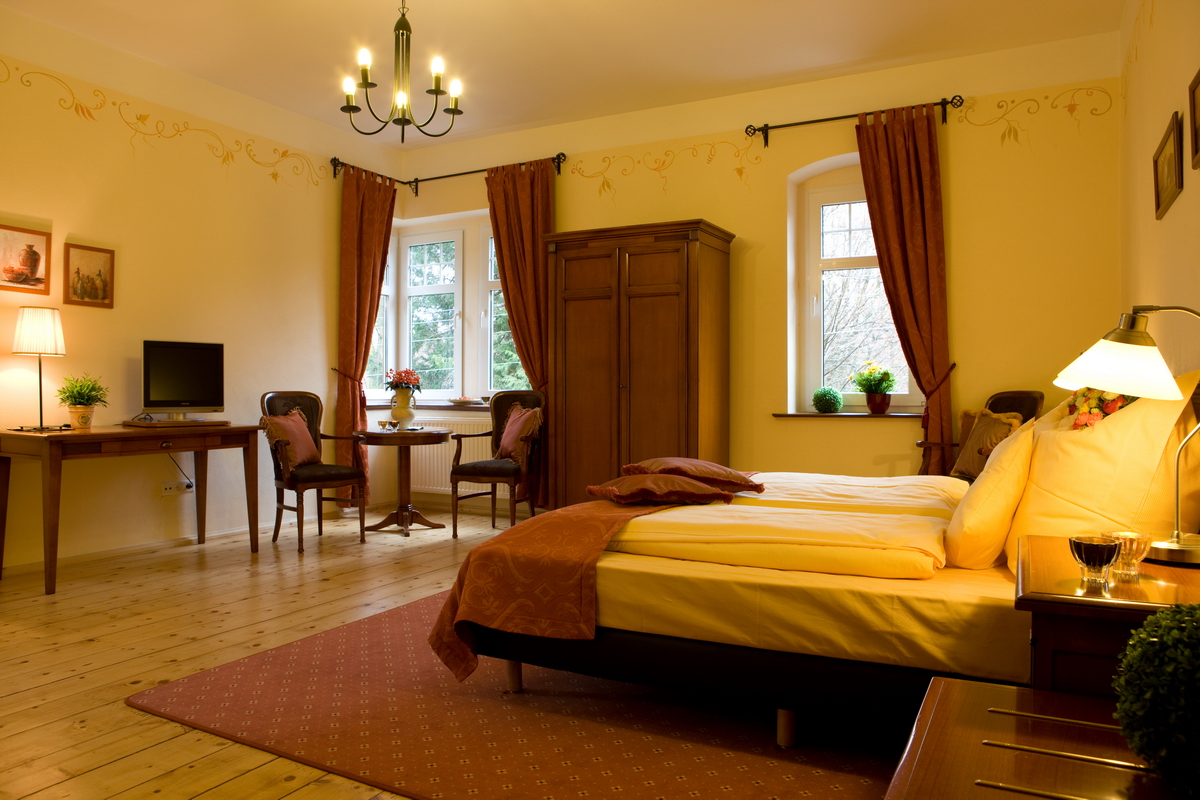 * 13 pokoi dwuosobowych oraz 2 apartamenty dwupokojowe z przepięknym widokiem na Góry Izerskie, indywidualnie zaprojektowanych i wyposażonych w przepiękne, klasyczne meble włoskiej firmy Selva. W każdym pokoju znajduje się łazienka z prysznicem i toaletą, telewizja satelitarna, telefon oraz dostęp do internetu.