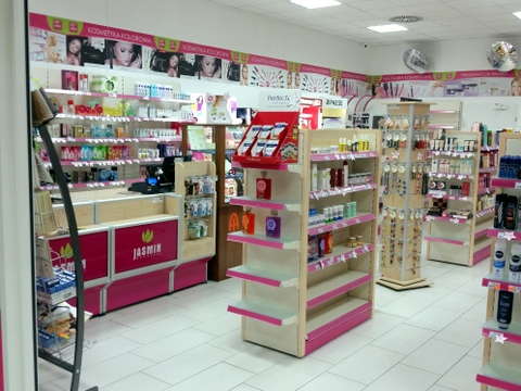 Drogeria wyposażona jest w metalowe meble systemowe (dowolna konfiguracja oraz możliwość dokupienia potrzebnych elementów), meble ze szklanymi półkami, szafy – kolorówki oraz różne standy poszczególnych marek. Na rynku działa od niespełna roku, więc całe wyposażenie jest w stanie idealnym a towar jest świeży oraz ciekawy. Sklep zaopatrzony jest w starannie dobrany i atrakcyjny asortyment, obecnie działa na powierzchni około 80 metrów kwadratowych. Nam dobór towaru oraz negocjacje cenowe zajęły około 3 miesiące – kupujący oszczędza ten czas.