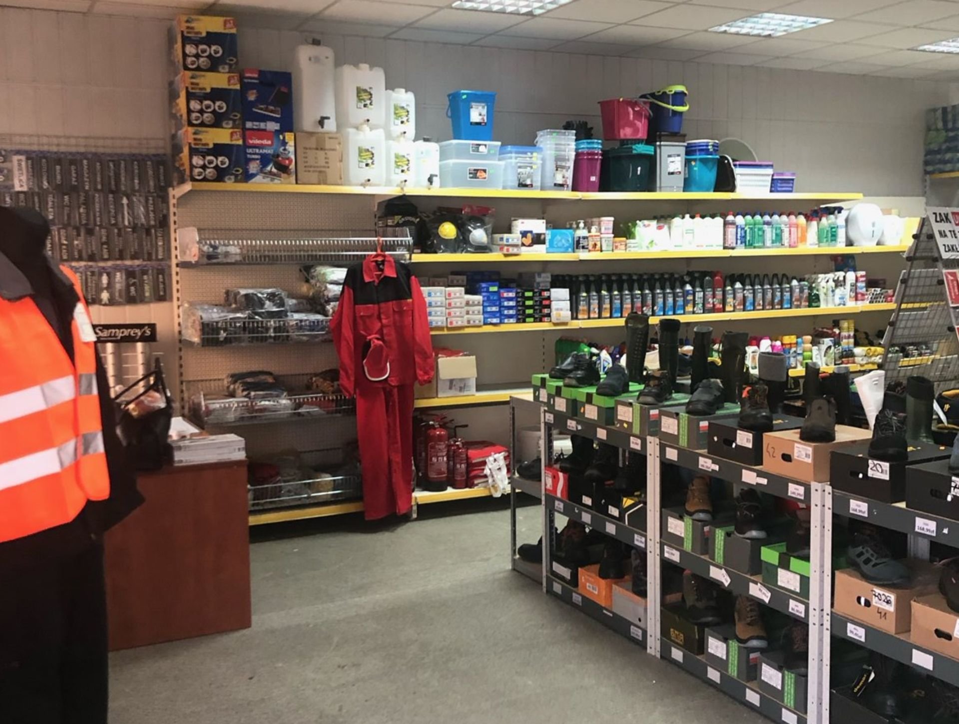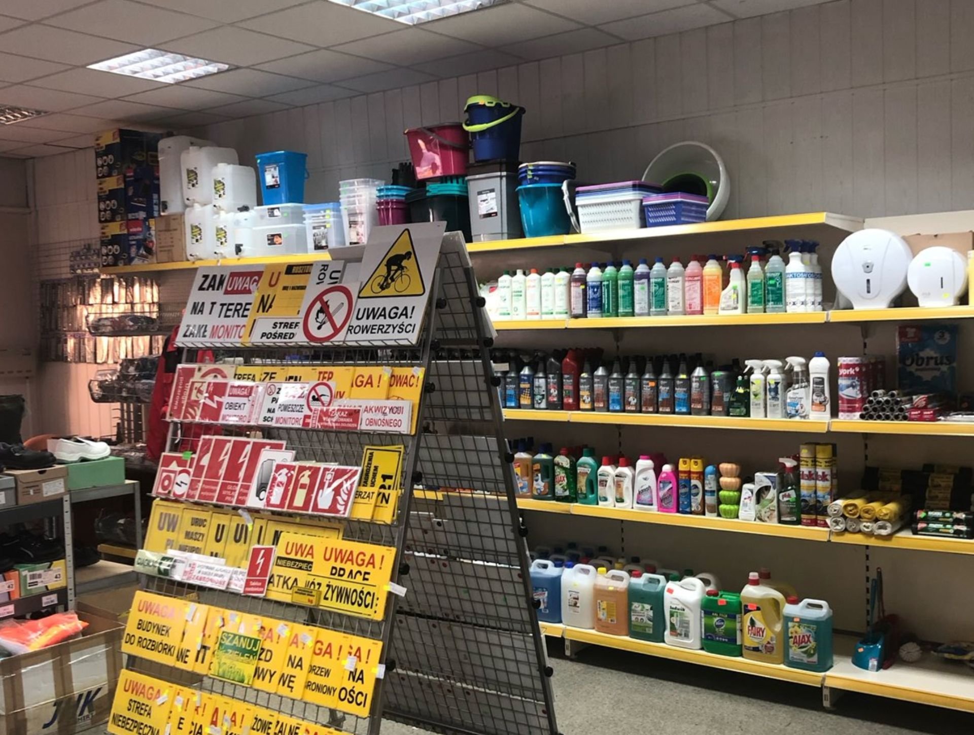 • Pełne wyposażenie sklepów i magazynów, w tym regały, komputery i sprzęt biurowy.